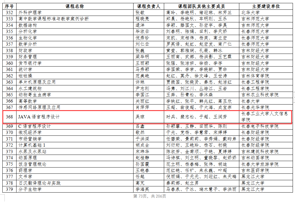 计算机科学与工程学院吴琼院长担任《JAVA语言程序设计》课程建设负责人,时兵、裴志松、于超、王润芳四位老师作为团队主要成员参与建设。