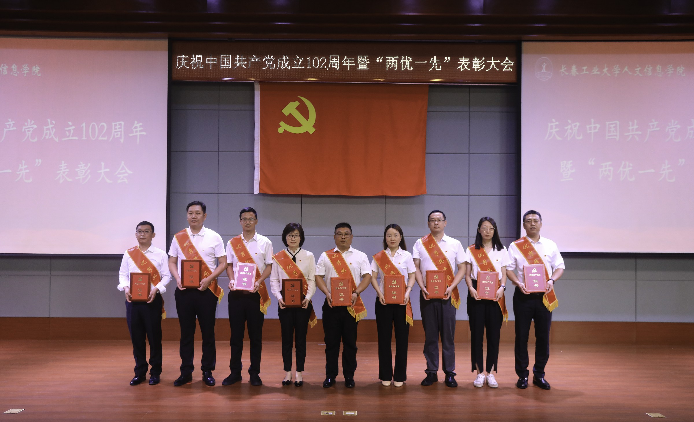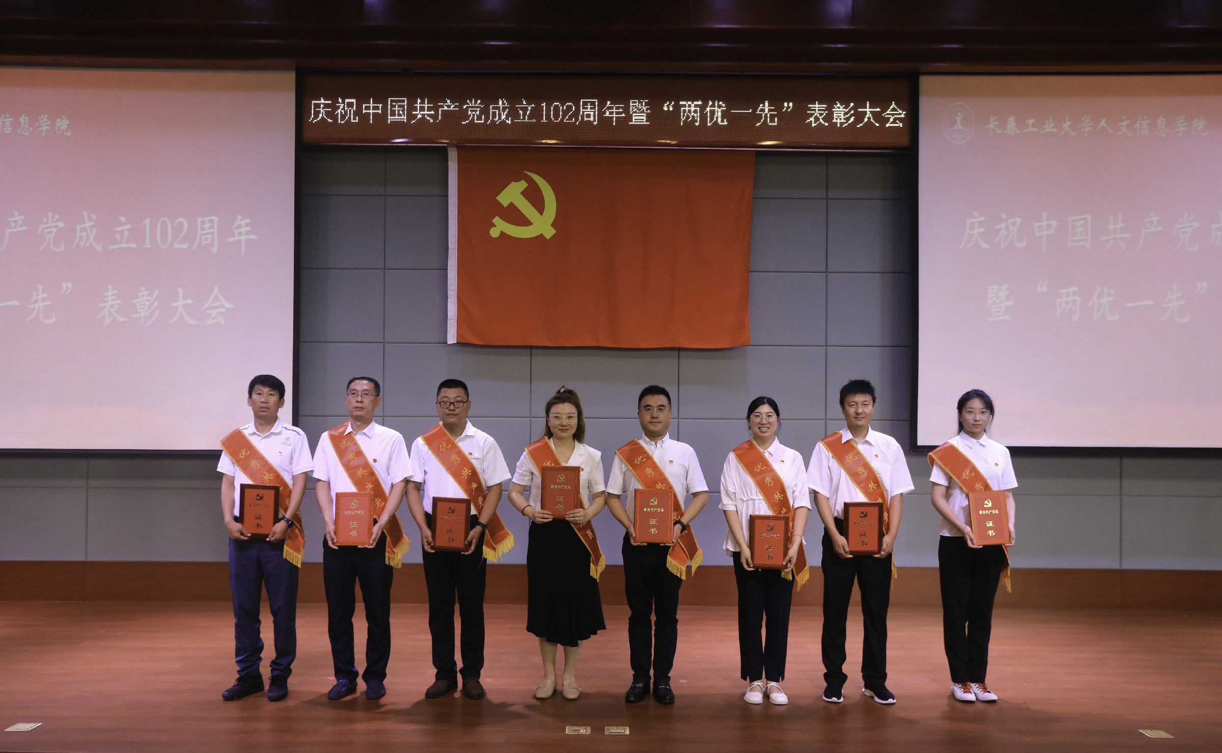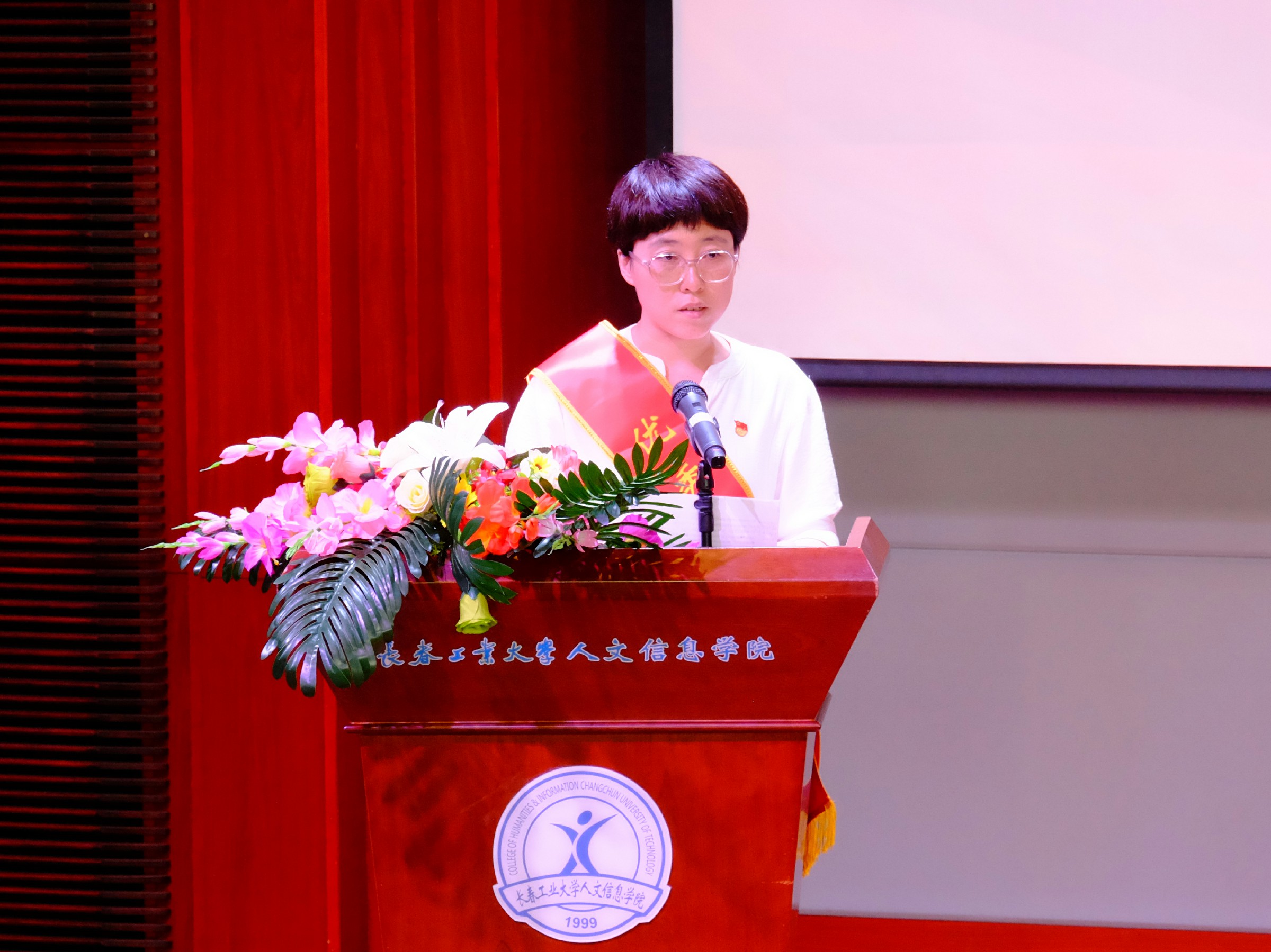 党委副书记周丹宣读《中共长春工业大学人文信息学院委员会关于表彰优秀共产党员、优秀党务工作者和先进基层党组织的决定》。