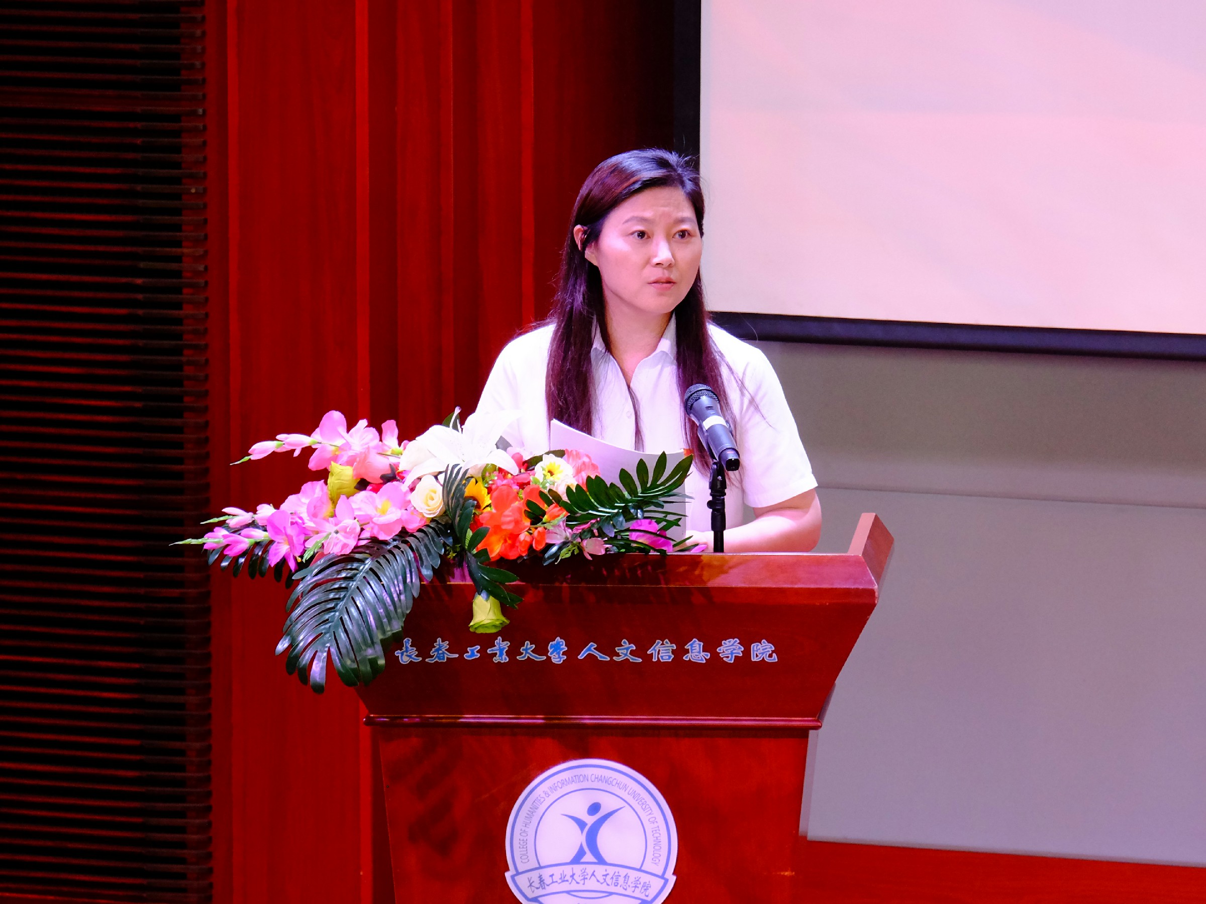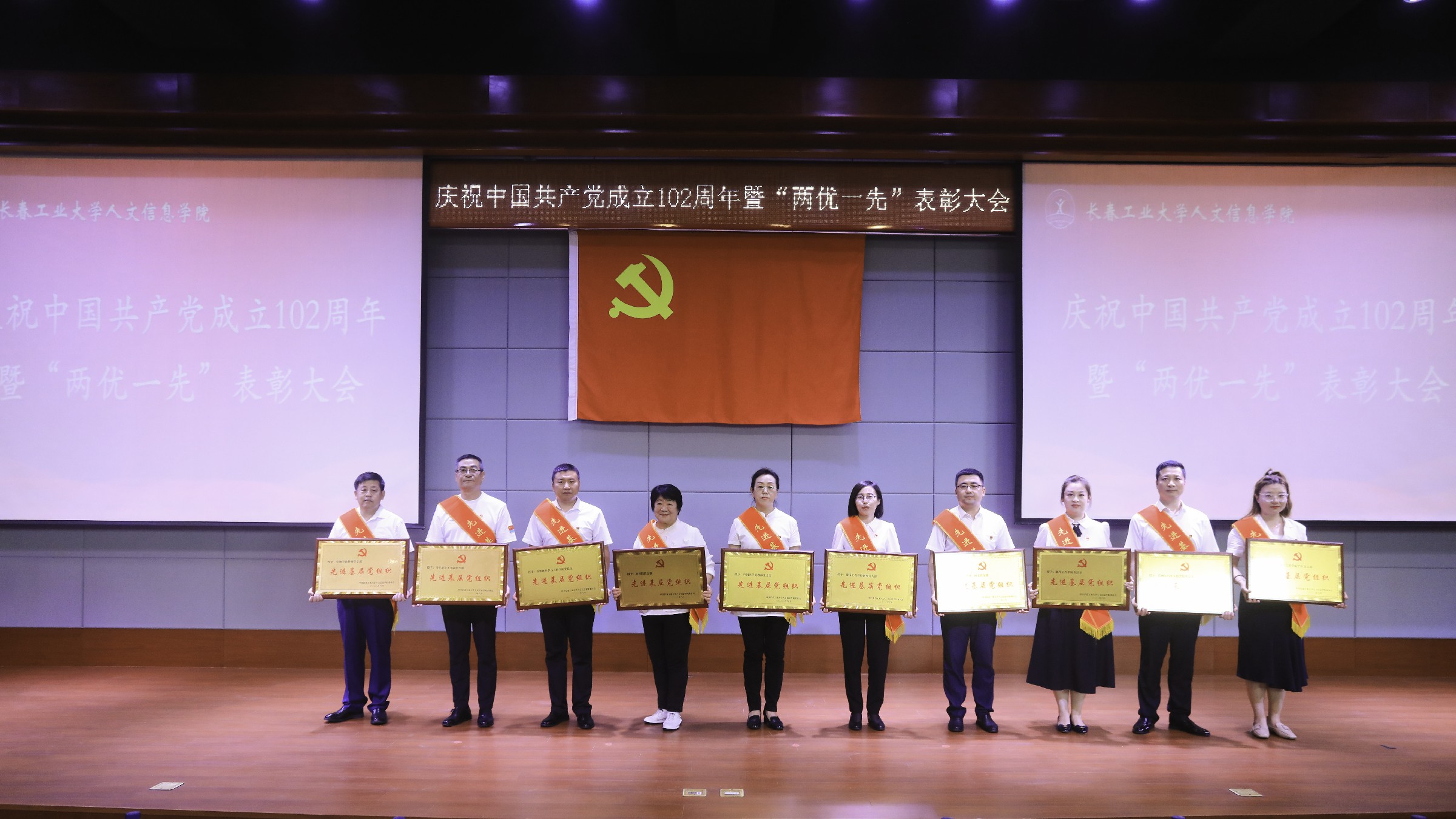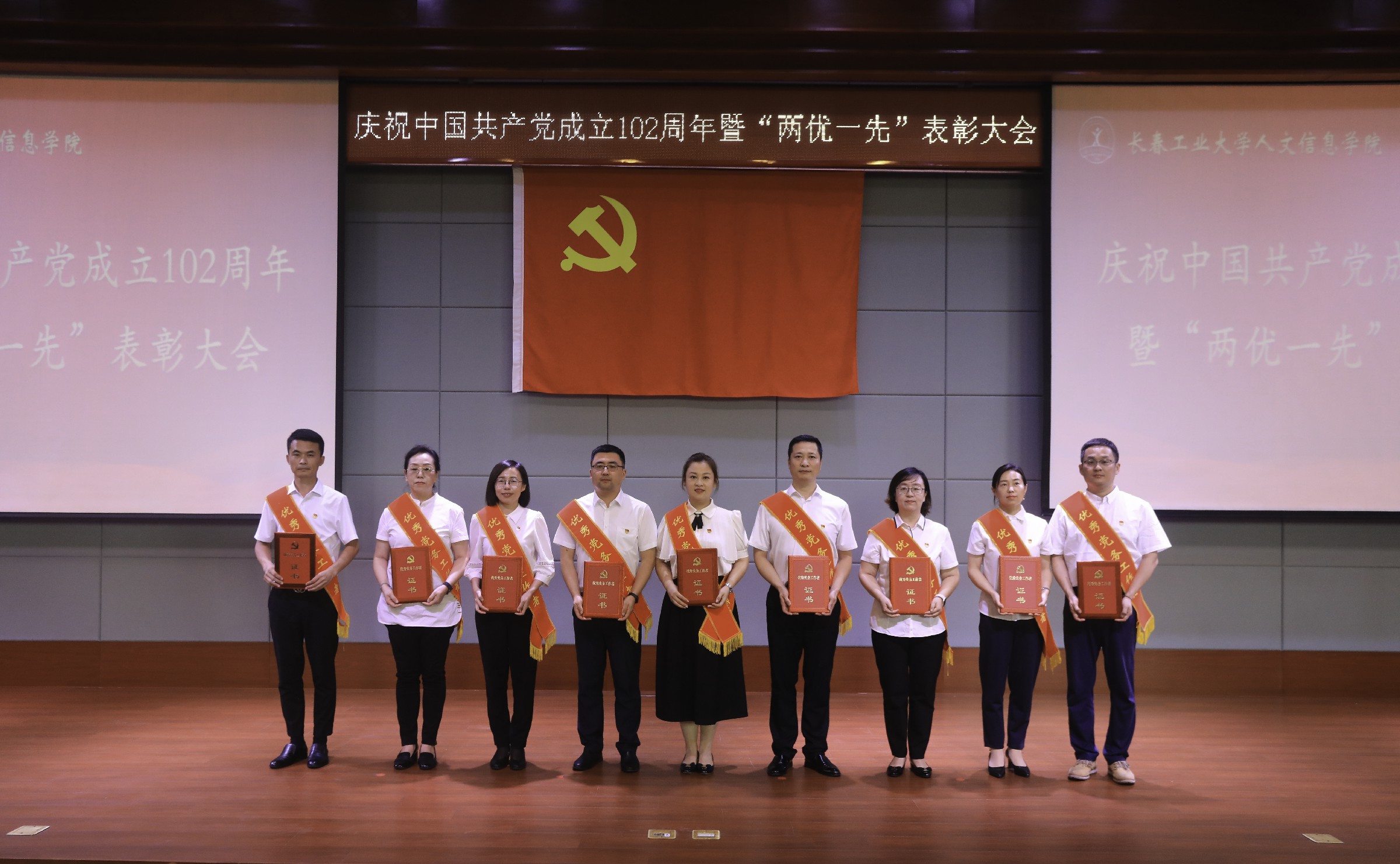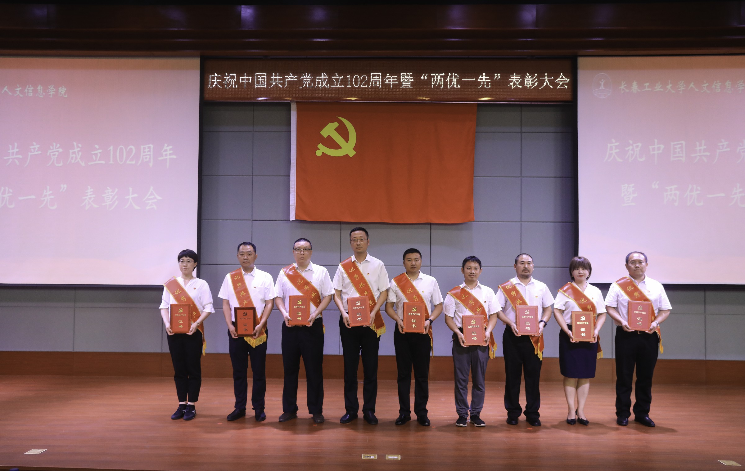 党委副书记周丹宣读《中共长春工业大学人文信息学院委员会关于表彰优秀共产党员、优秀党务工作者和先进基层党组织的决定》。