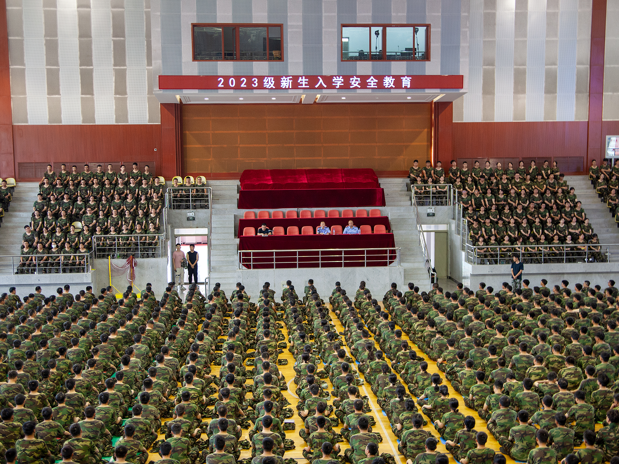 为扎实推进平安校园建设,提高学生们的校园安全意识和自我防护能力,抓紧抓实学生安全教育,9月8日下午,保卫处和学生工作处联合组织开展“2023级新生入学安全教育——校园安全第一课”。学校邀请长春市公安局净月分局福祉大路派出所所长赵兴业为新生做安全教育讲座。