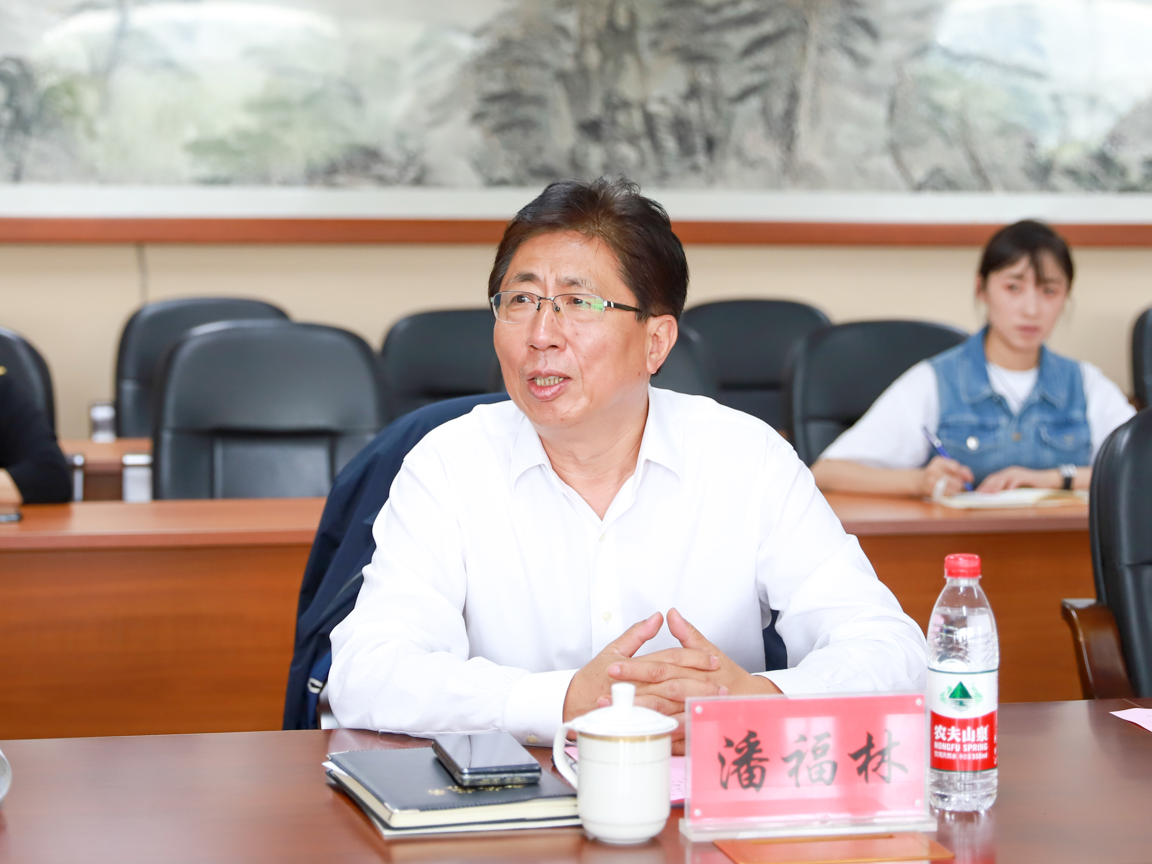 校长潘福林、校党委副书记周丹、马克思主义学院院长范军、院长助理沈洪艳分别就学校对马克思主义学院建设的重视、思政导师制度的创立、大思政课建设情况及如何提高思政课教师使命感和幸福感等方面做了情况介绍。