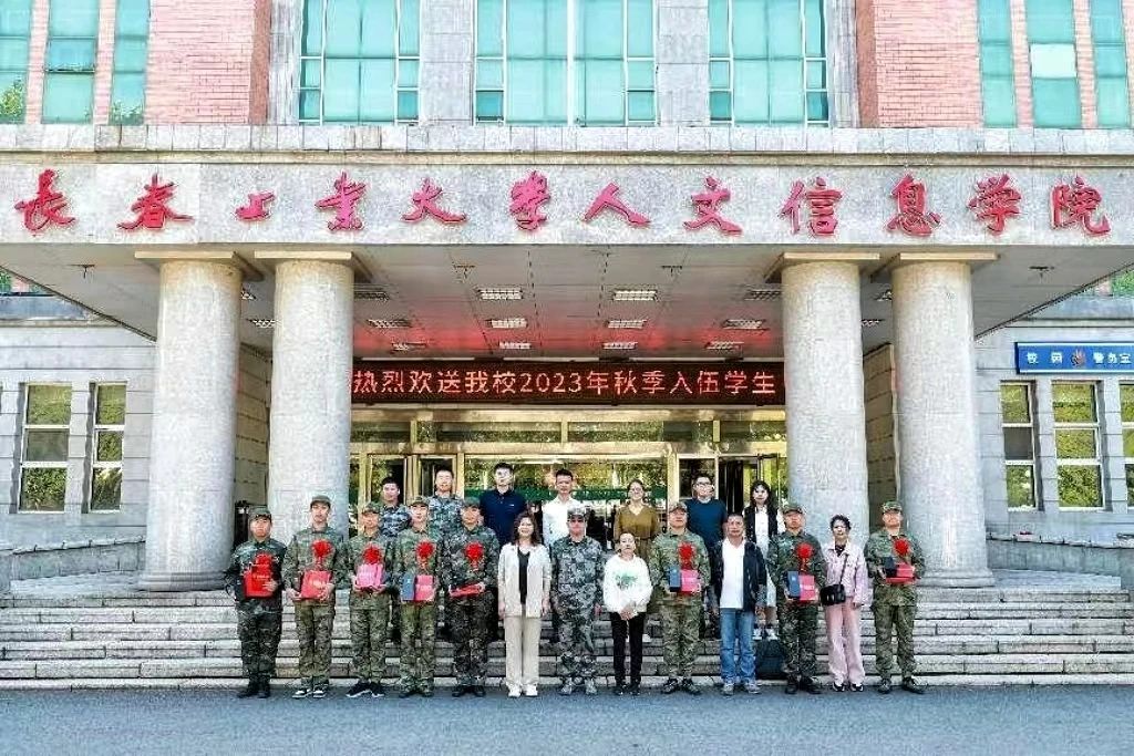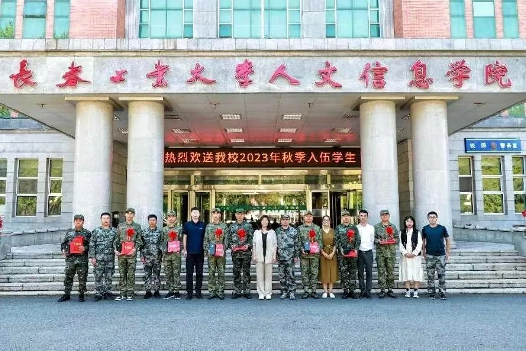 校武装部同志寄语即将入伍的工大人文学子要不忘初心、牢记使命,将学校的“两强”精神带到部队,在军队的大熔炉里熏陶和锻炼,要能吃苦、敢争先,以优良的作风、高尚的道德风貌,承担起军人的神圣职责,争做党的二十大精神的践行者;磨炼意志、献身国防,培养吃苦耐劳的品质,练就过硬的军事本领,成为实现建军一百年目标的奋斗者;建功立业、以优异的成绩为工大人文争光,在军营里谱写出无悔壮丽的青春华章。校武装部同志表示,学校会持续关注大家在部队的情况,如有什么困难可以随时联系校武装部,也希望大家今后能常回母校看看。