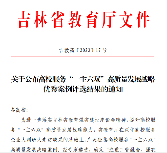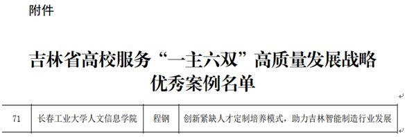 近年来,学校各项教学建设工作紧扣“一主六双” 高质量发展战略,持续加大学科专业优化调整力度,不断深化教学改革,锚定新情况新问题,靶向发力,广泛开展企业大走访大调研活动,将人才培养、科研创新对接行业产业需求,以实际行动回答“教育强省、高教何为”。未来,学校将进一步深化教育教学综合改革,充分发挥优秀案例示范性引领作用,在特色化人才培养上出实招,见实效,为推动吉林全面振兴发展作出新的贡献。