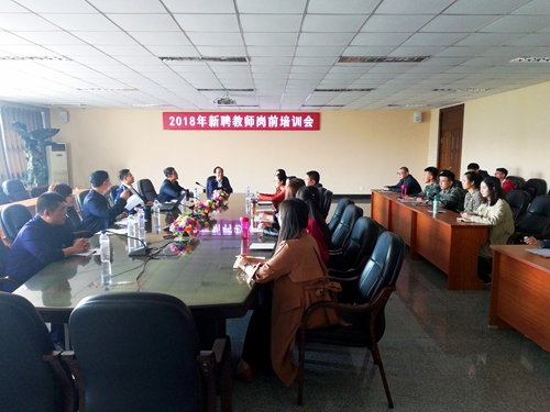 9月12日下午,学院在院部三楼会议室召开2018年新聘教师岗前培训会。会前,学院创建人、董事长张兆华,院长雷庆,党委书记程军亲切看望了全体新聘教师。院长助理兼教师发展中心主任贺同华,马克思主义教研部主任范军,先进教师代表孙娜、闫鹏在会上发言,共有22名新聘教师参加培训会。会议由统战部副部长张金良主持。