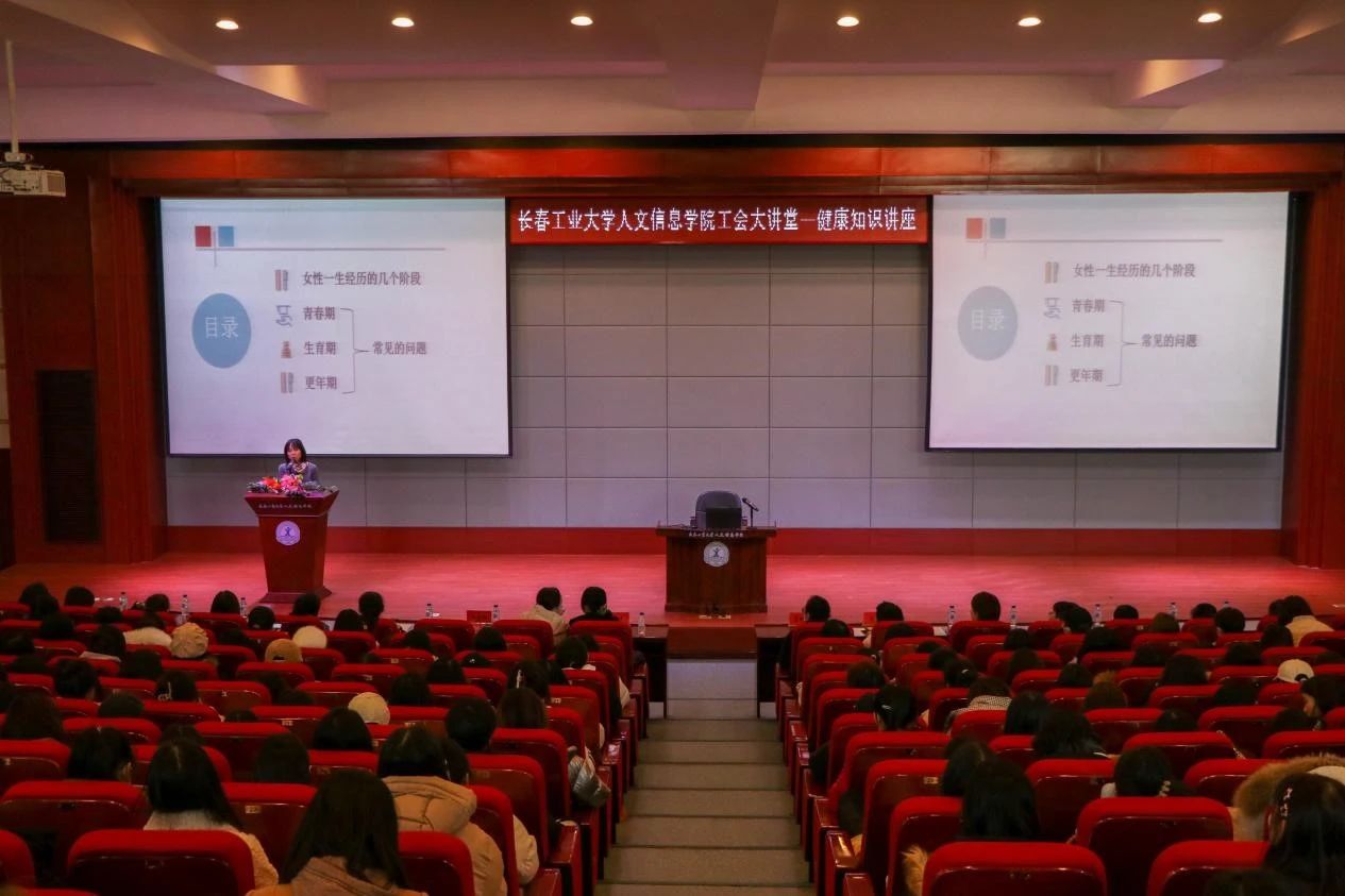 为关爱女性师生员工健康生活,增强女性师生员工健康意识,11月15日,由长春市妇产医院、长春工业大学人文信息学院联合举办,学校外国语学院承办的首届工会大讲堂——健康知识讲座在学校学术报告厅举行,特邀长春市妇产医院专家荣涛老师为女性师生员工普及健康知识。