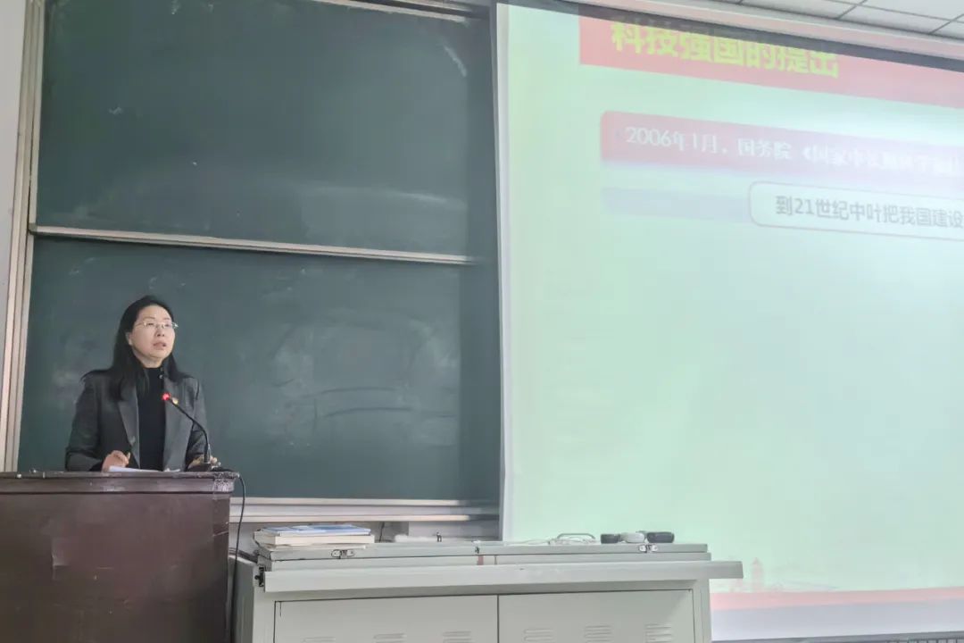 臧玉萍从中国科技强国提出及时代背景:科技强国“三步走”发展战略的制定、中国领先全球的十大工业技术、目前我国基础科学研究仍是科技强国的短板;科技强国的内涵:何为科技强国、世界科技强国五大核心特征、目前世界大国强国在科技领域的激烈竞争现状;如何建设科技强国:加大科研经费的投入、基础科学研究的极端重要性、科学与技术本质上的不同、科技强国的标准;建设科技强国对于当代大学生的重要意义;科技强国赋予大学生的历史使命等多方面多维度给学生们呈现了一餐科技强国的盛宴。