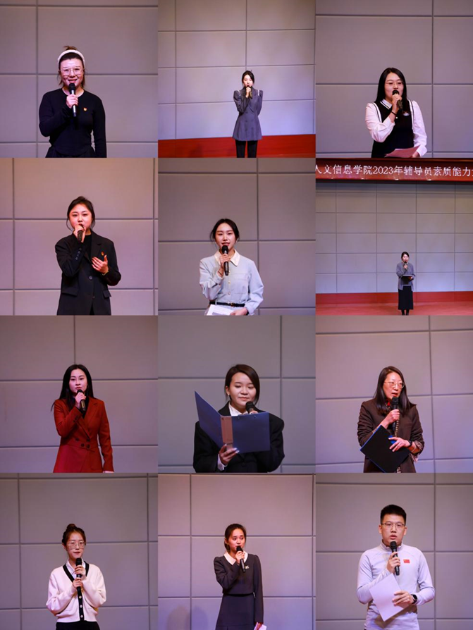 会上,22名辅导员从实践育人、管理育人、服务育人、文化育人、组织育人、网络育人、心理育人、资助育人八个主题中随机选题进行演讲。以习近平新时代中国特色社会主义思想为指导,围绕立德树人根本任务,立足本职,与身边先进典型、青年榜样、自身成长故事相结合,灵活运用当前的社会热点、国内外时事,从小切口入手、小事例破题,展现了我校辅导员奋进新征程、建功新时代的心声和行动。