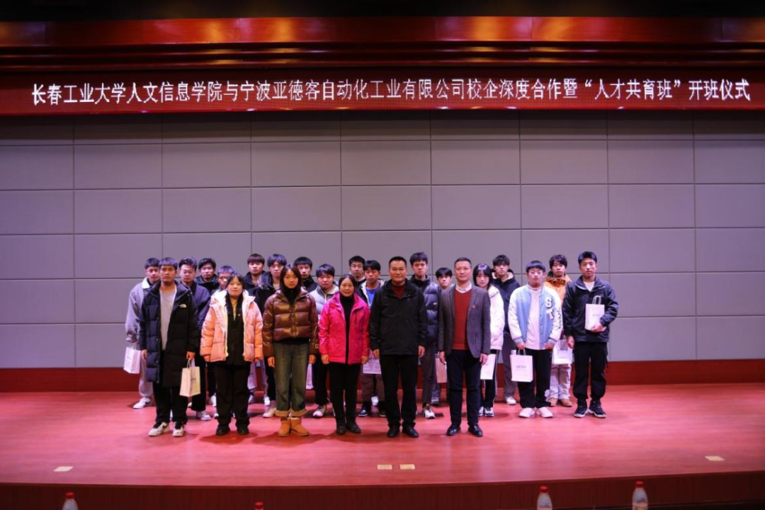 为加强校企合作、深化产教融合,创新人才培养模式,深入落实人才共育目标,2023年12月13日,宁波亚德客自动化工业有限公司与我校于学校学术报告厅举行了校企深度合作暨“人才共育班”开班仪式,宁波亚德客自动化工业有限公司行政部经理陆宗军,人事科高级专员荀桂花,管理处专员林芳竹出席仪式,学校副校长臧玉萍,机械与汽车工程学院院长毛志阳,副院长刘跃东以及学院师生代表参加,学院党总支书记秦海雷主持。