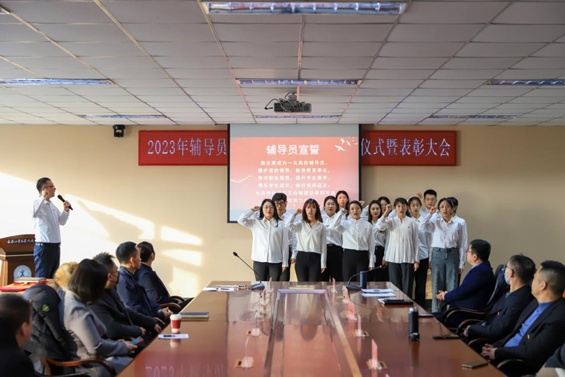 2022年、2023年新入职辅导员庄严宣读辅导员誓词,学生工作处副处长田磊领誓。通过宣誓表达出我校全体辅导员,全心全意服务学生、恪守辅导员职业操守、奉献教育事业的初心。