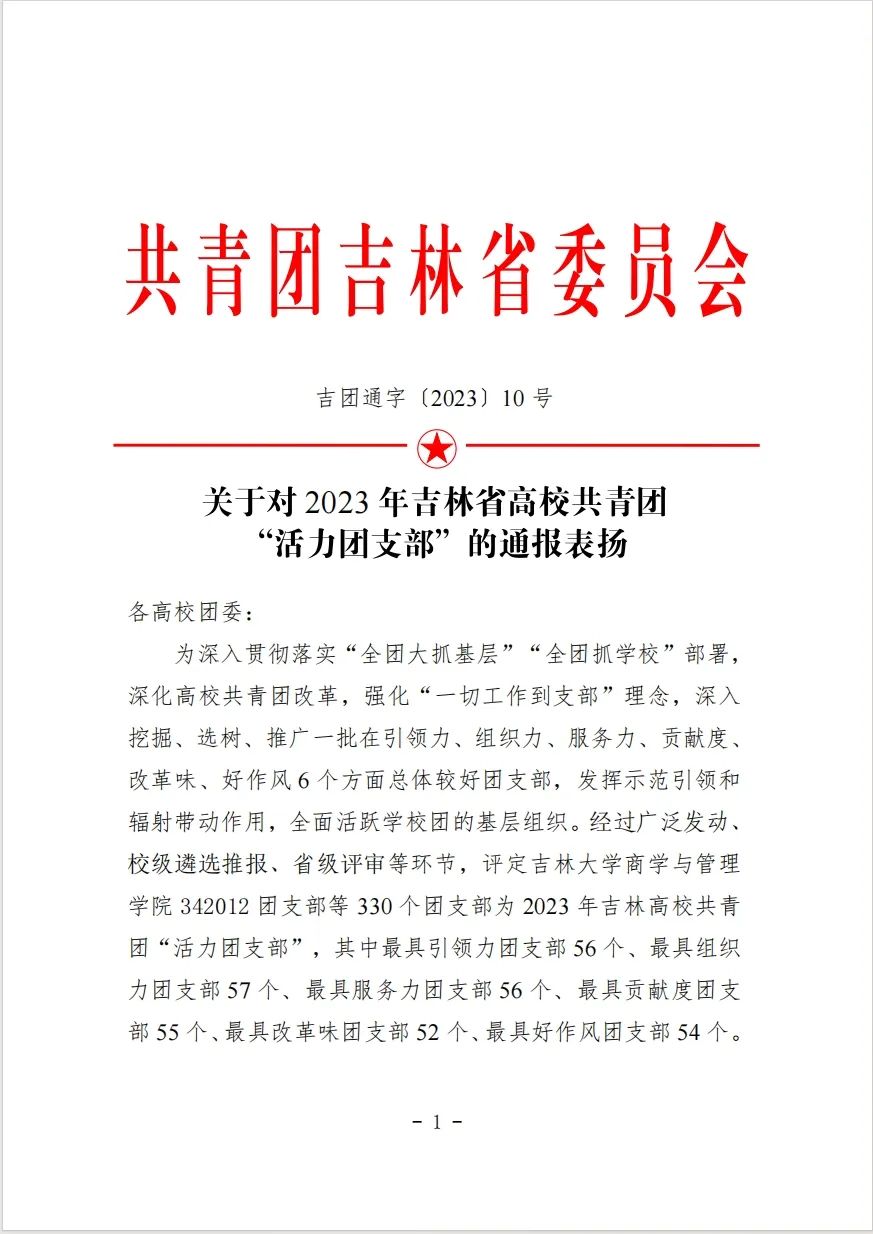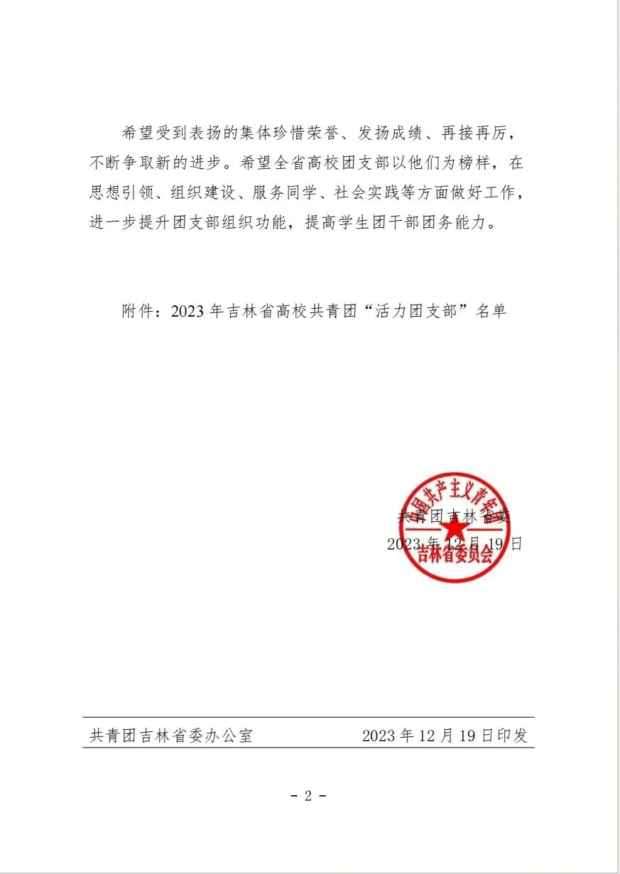 表扬先进、树立典型。经共青团吉林省委员会决定,我校共有6个团支部被授予“活力团支部”称号。