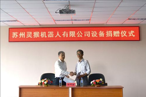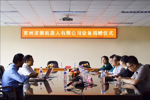 2018年6月13日上午,苏州灵猴机器人有限公司向我院捐赠设备仪式在院部三楼会议室隆重举行,苏州灵猴机器人有限公司此次向我院捐赠用于教学实训和科研使用的直线电机组两台。参加捐赠仪式的有苏州灵猴机器人有限公司副总经理于军、资深研发主管万翔,学院院长雷庆、副院长臧玉萍、机械系主任陆爽、机械系副主任范悦,教务处副处长程钢及其他相关人员出席仪式。会议由教务处副处长程钢主持。