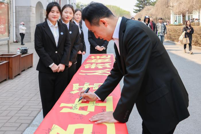 活动中师生们纷纷走到印有“节水节电 绿色生活 从我做起”横幅前,郑重地签下自己的名字,承诺用实际行动争做节水节电的实践者、示范者、传播者,做绿色校园建设最坚定的支持者。
