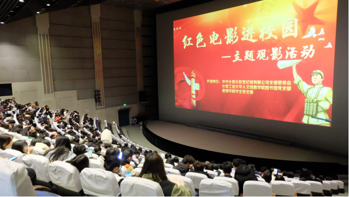 为宣传爱国主义精神,弘扬民族精神和时代精神,激发当代大学生的使命感和责任感,图书馆与共建单位长影世纪城在读书节期间共同开展红色电影进校园活动。从3月20日开始,累计1200余人次参与观看《董存瑞》《平原游击队》《冰山上的来客》《冰上姐妹》等四部经过修复的红色老电影。通过观影,增强了我校读者的爱国主义情怀和民族使命担当。