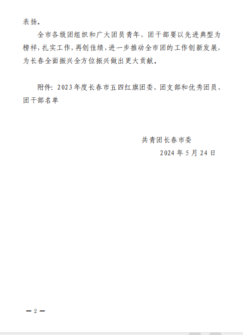 近日,共青团长春市委发布了《关于对2023年度长春市五四红旗团委、团支部和优秀团员、团干部予以通报表扬的决定》。长春工业大学人文信息学院团委荣获“2023年度长春市五四红旗团委”。