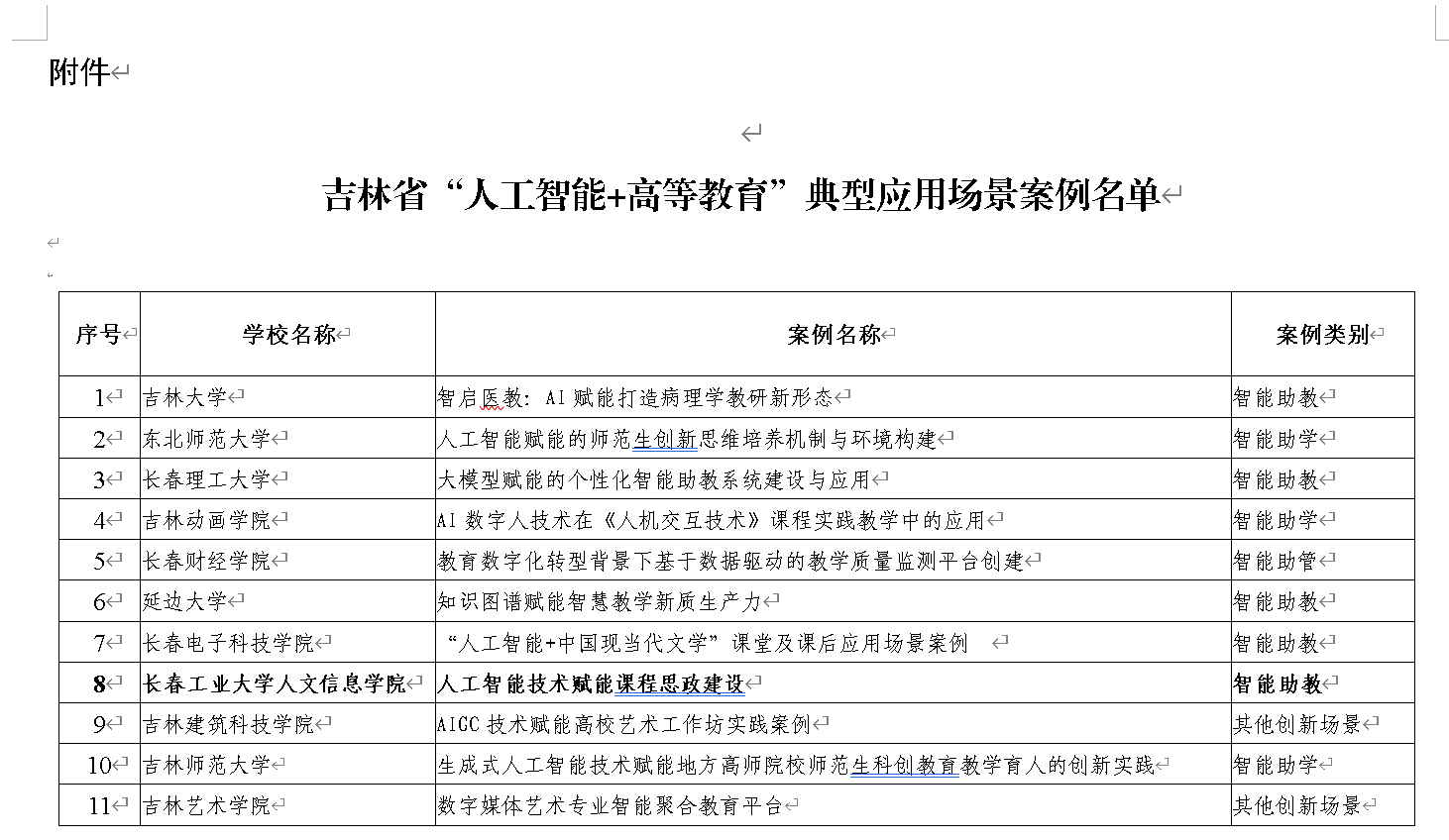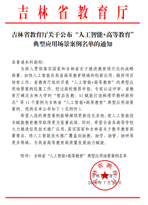 近日,吉林省教育厅公布了“人工智能+高等教育”典型应用场景案例名单,我校报送的《人工智能技术赋能课程思政建设》案例,作为学校课程思政建设特色成果产出,成功获批。