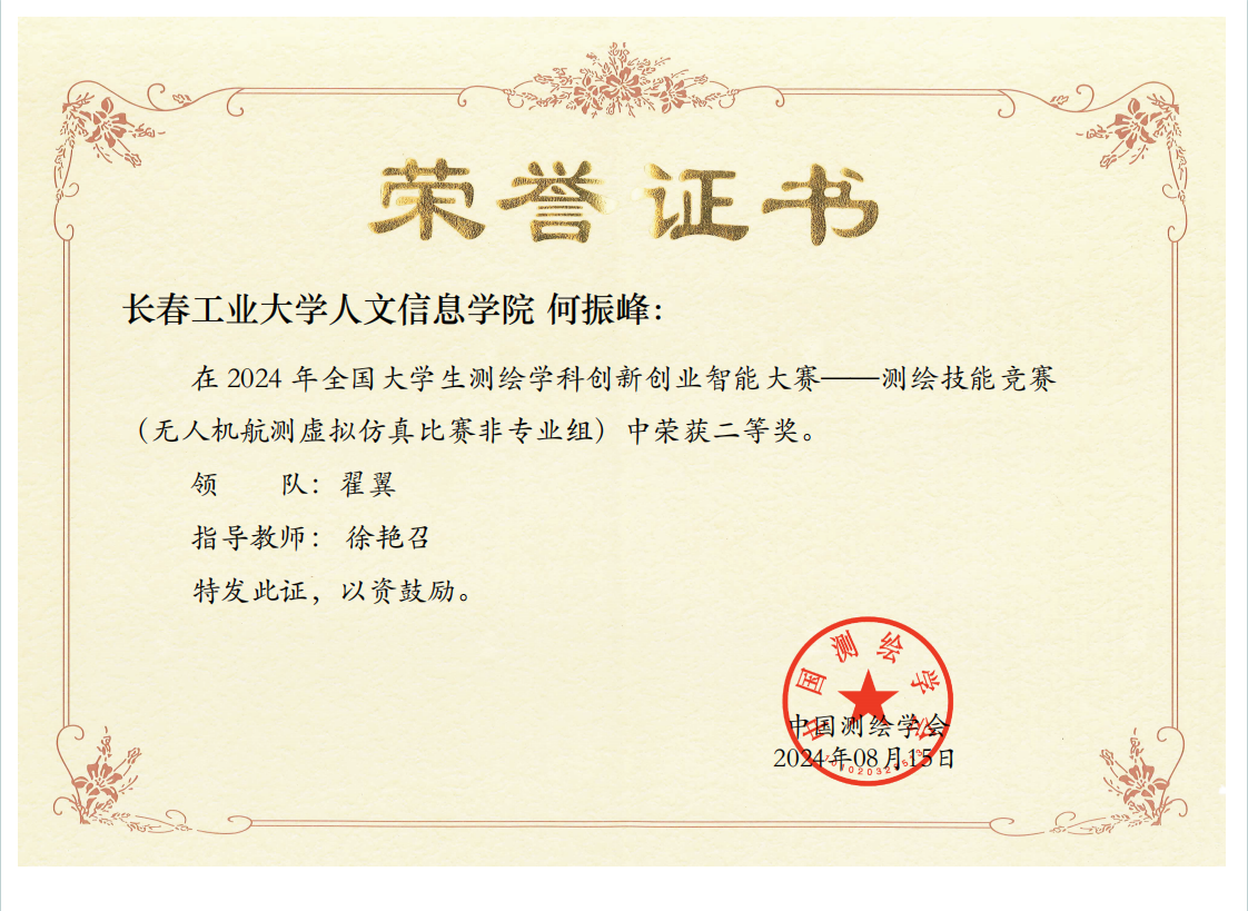 通过在学校智慧建造综合实训室近3个月的备赛、选拔、模拟,最终由来自建设工程学院2022级工程造价、工程管理、土木工程、智能建造专业的18名学生代表,参加全国总决赛,并由徐艳召、翟翼等老师负责指导。大赛于7月29日进行,经过4个小时的激烈角逐,最终2022级荆泽轩、何振峰两名学生分别在虚拟仿真数字测图比赛、无人机航测虚拟仿真比赛两项赛事中荣获二等奖。