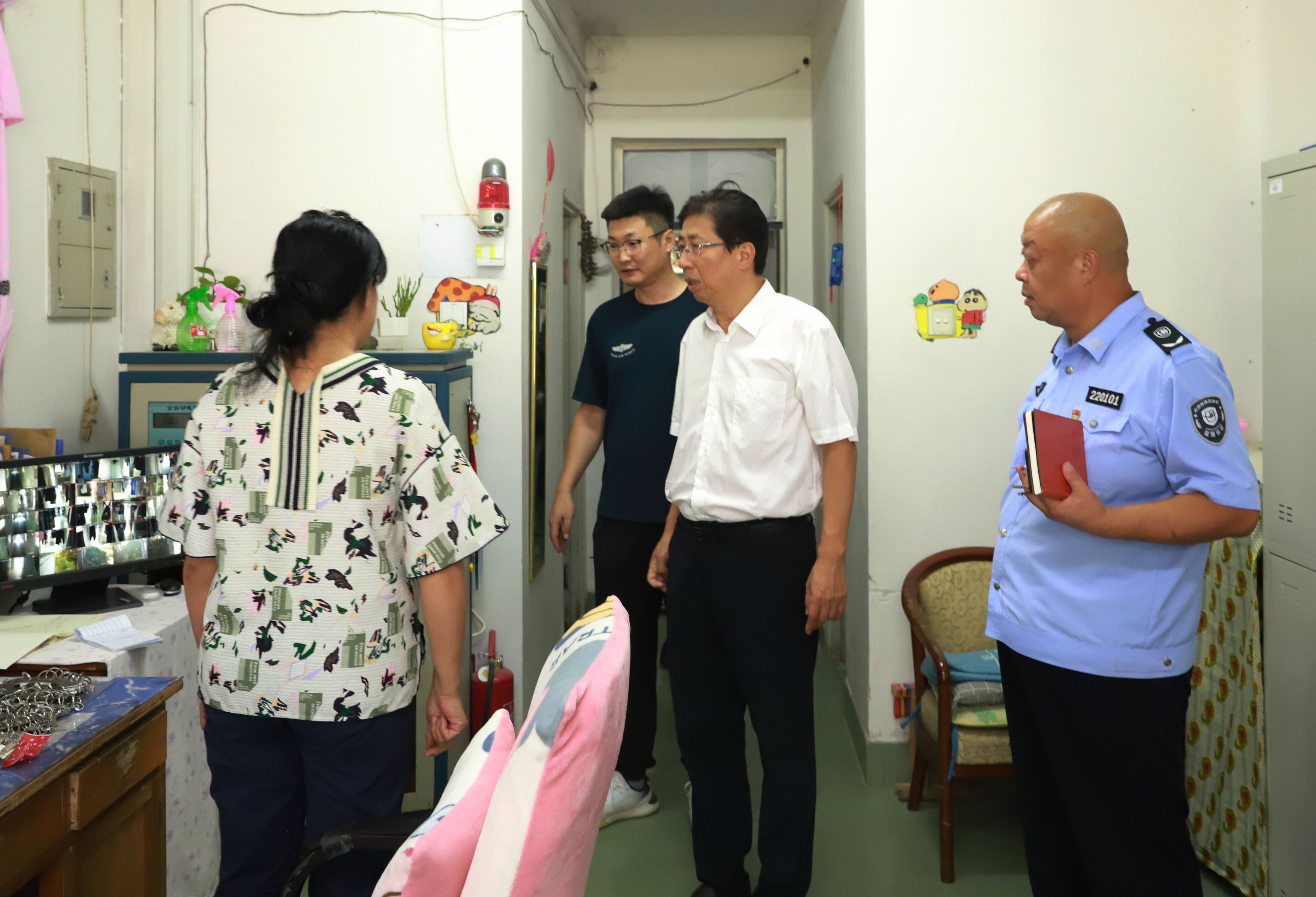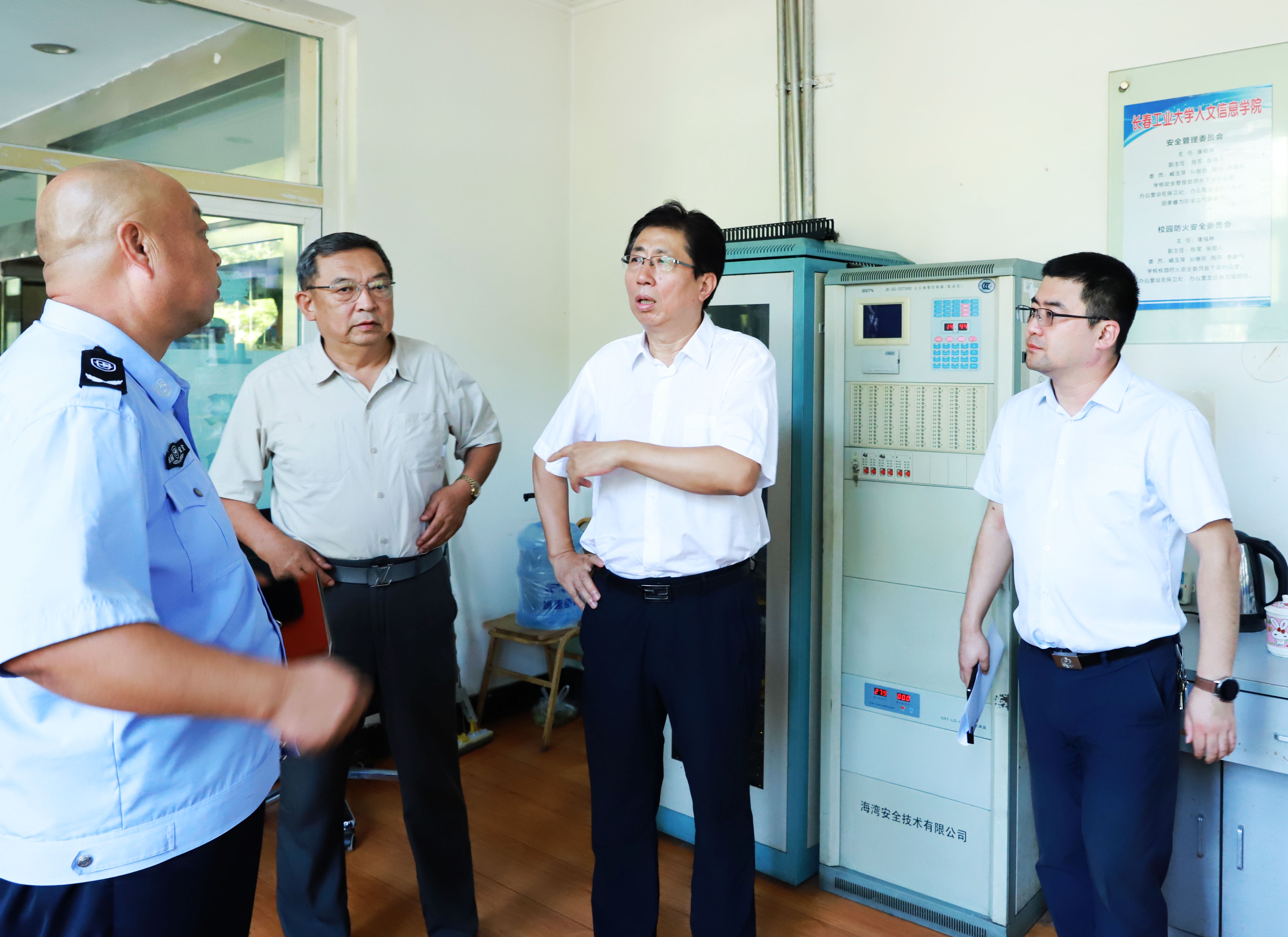 8月28日,由校长潘福林带队,分管安全校领导张哲人,保卫处处长刘强、学生工作处处长庞旭、后勤处处长刘磊和相关工作人员组成检查组,对学校舍务、后勤、保卫等部门执勤、住宿场所进行安全检查。