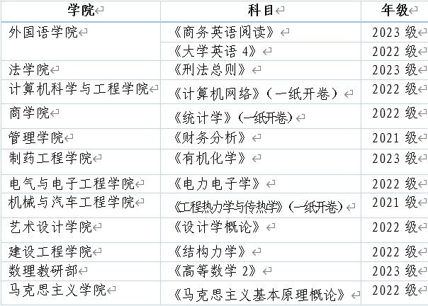 此次选择的课程由质量监控中心选定,教务处准备大纲、试卷、答案及成绩单,教学单位上交教师工作手册。质量监控中心全体人员及校级督学参加检查工作。