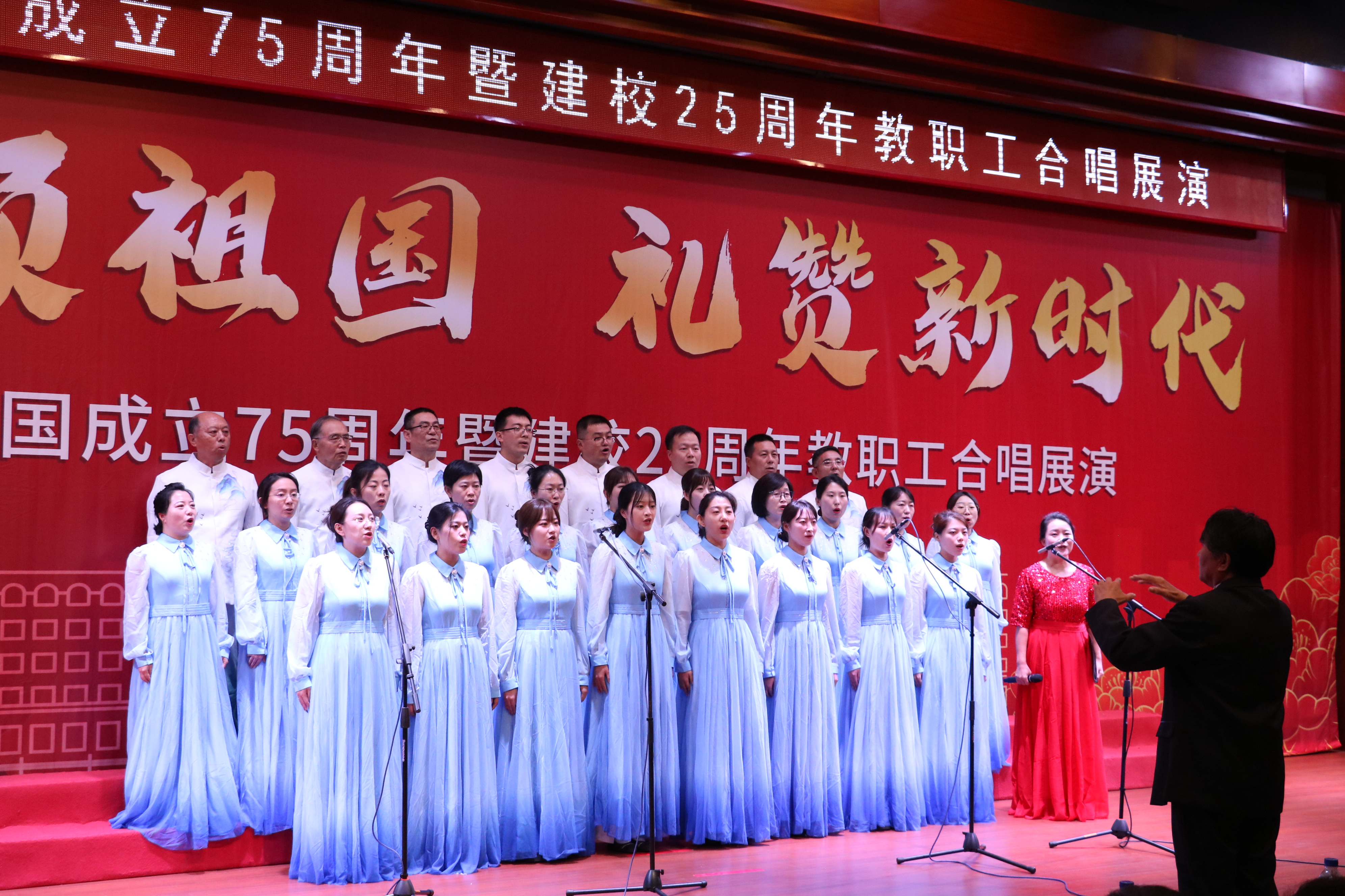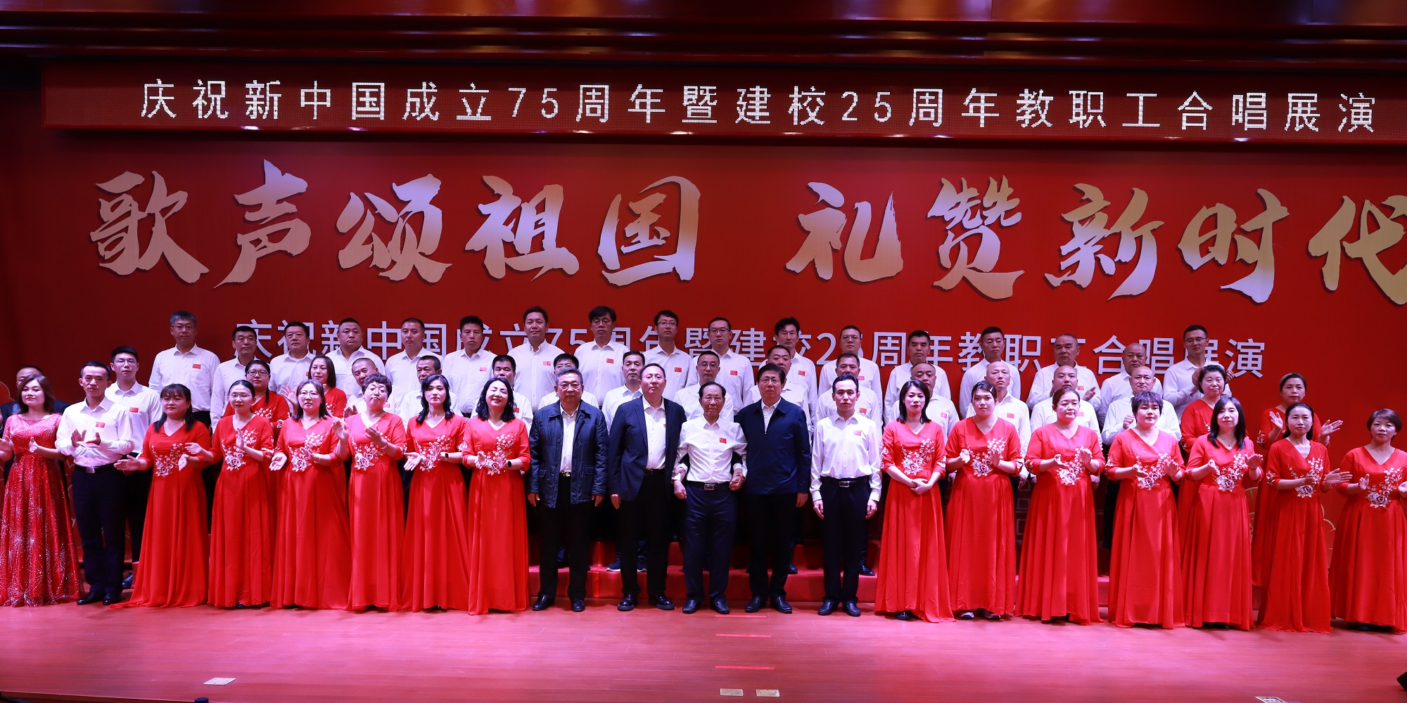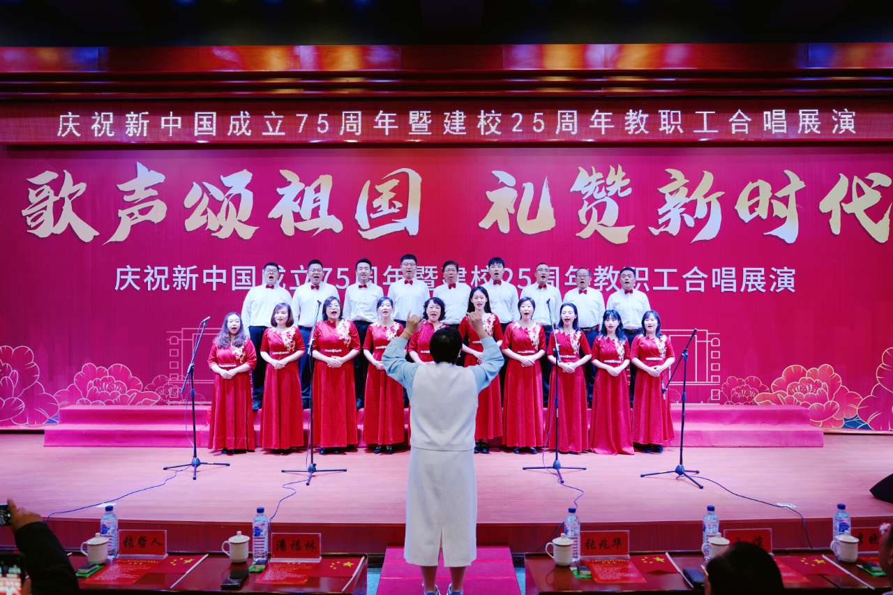 在举国上下庆祝中华人民共和国成立75周年之际,我校迎来了25周年华诞,学校举行“歌声颂祖国 礼赞新时代”教职工合唱展演活动,不仅是一场音乐盛宴,更是一次深刻的爱国主义教育和校史教育。它激励着全校教职工在新时代继续发扬爱国主义精神,不忘初心,牢记使命,为实现中华民族伟大复兴的中国梦而努力奋斗;更激励着大家为学校的建设和发展贡献智慧和力量,共同创造更加美好的未来。