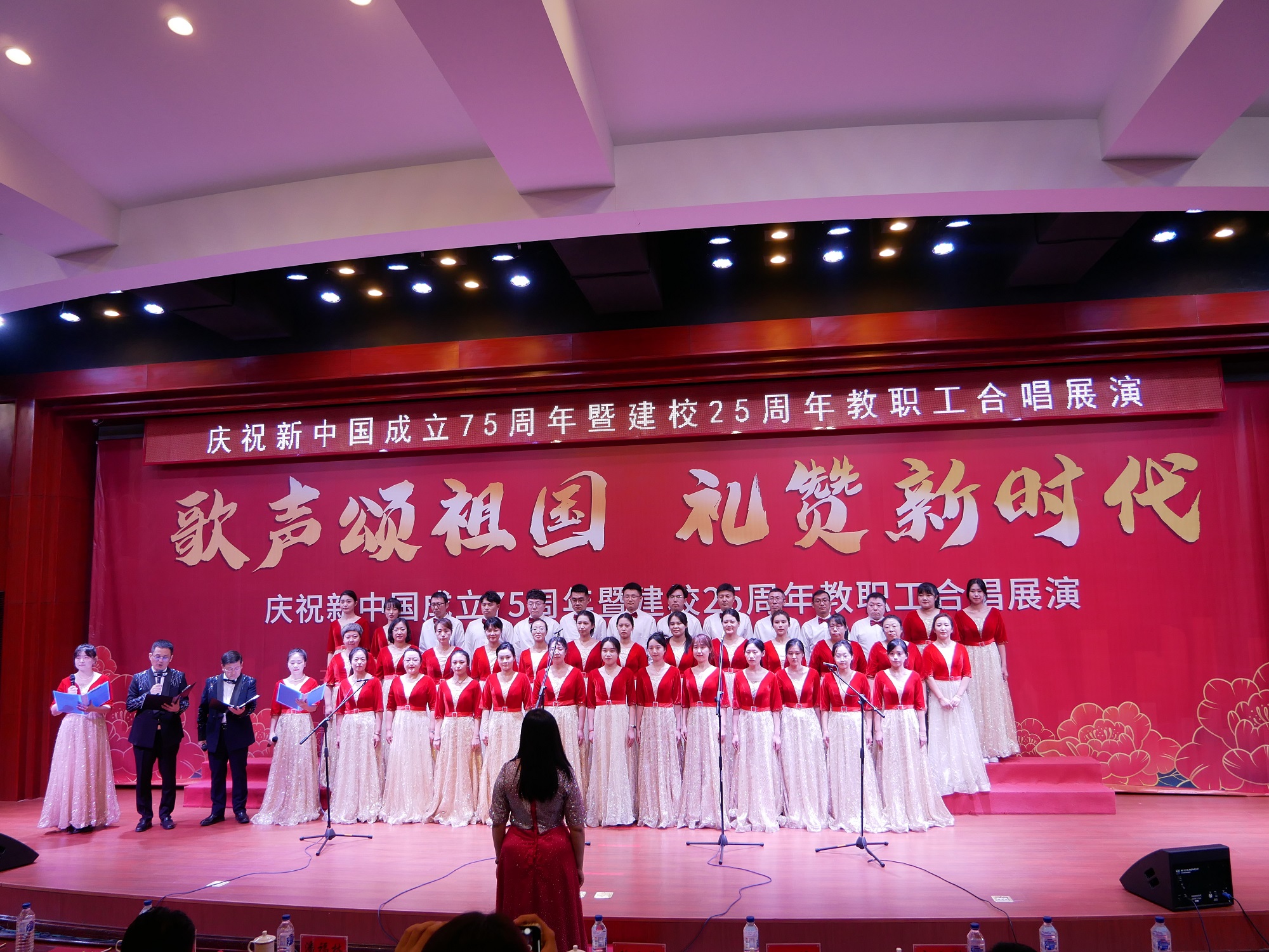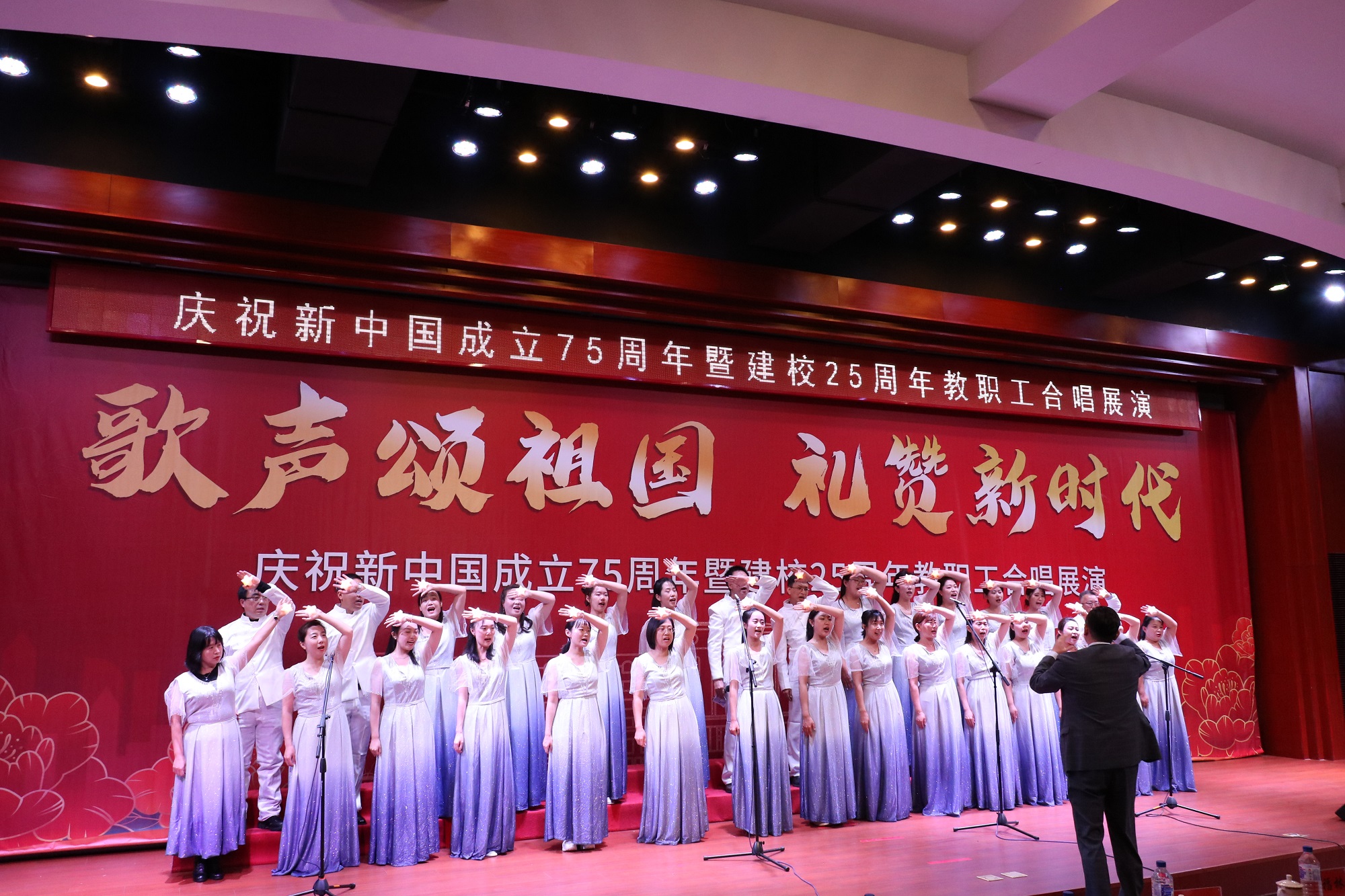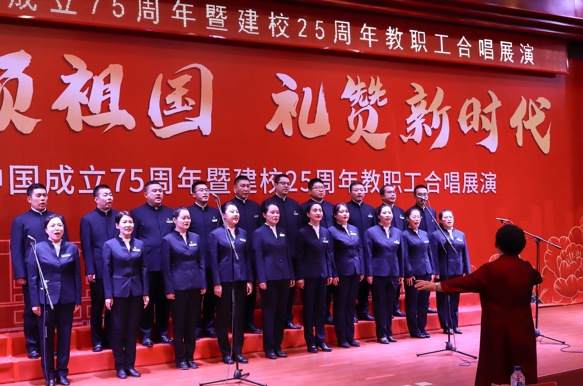 在举国上下庆祝中华人民共和国成立75周年之际,我校迎来了25周年华诞,学校举行“歌声颂祖国 礼赞新时代”教职工合唱展演活动,不仅是一场音乐盛宴,更是一次深刻的爱国主义教育和校史教育。它激励着全校教职工在新时代继续发扬爱国主义精神,不忘初心,牢记使命,为实现中华民族伟大复兴的中国梦而努力奋斗;更激励着大家为学校的建设和发展贡献智慧和力量,共同创造更加美好的未来。