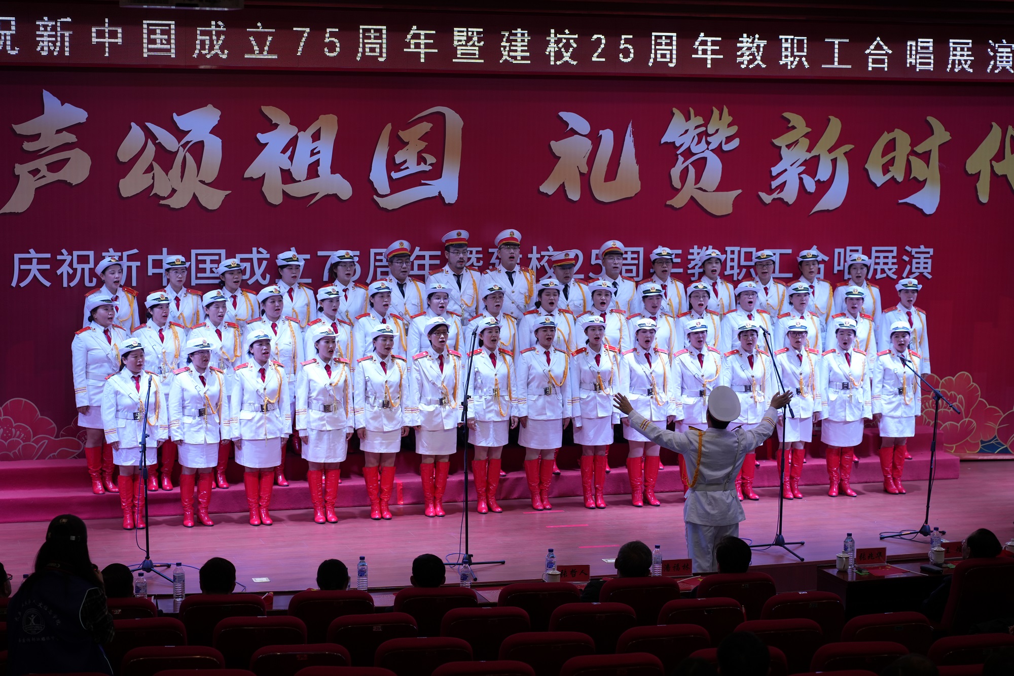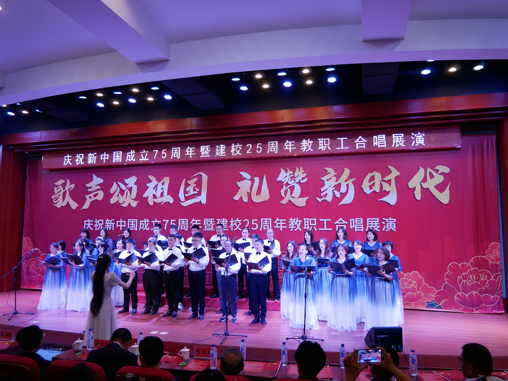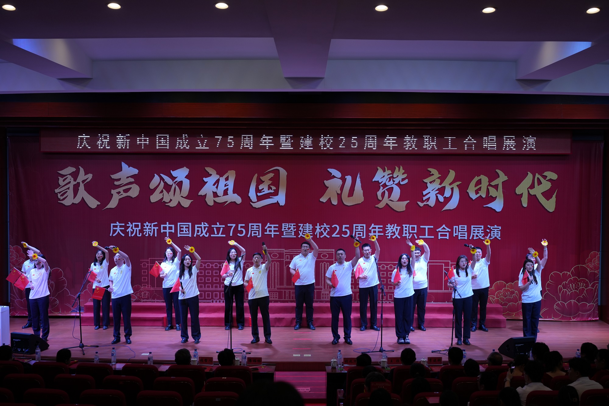 9月25日下午,长春工业大学人文信息学院学术报告厅灯光璀璨,红旗飘扬。学校庆祝新中国成立75周年暨建校25周年教职工合唱展演成功举行。学校创建人、董事长张兆华,校长潘福林,党委书记王煊,纪委书记张哲人,副校长李晓科出席活动。现场热烈隆重,充满力量。