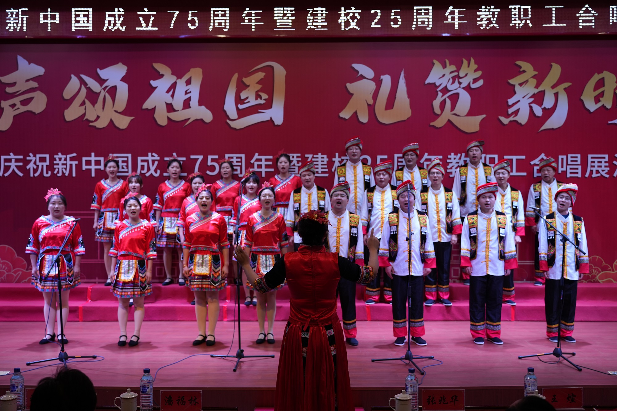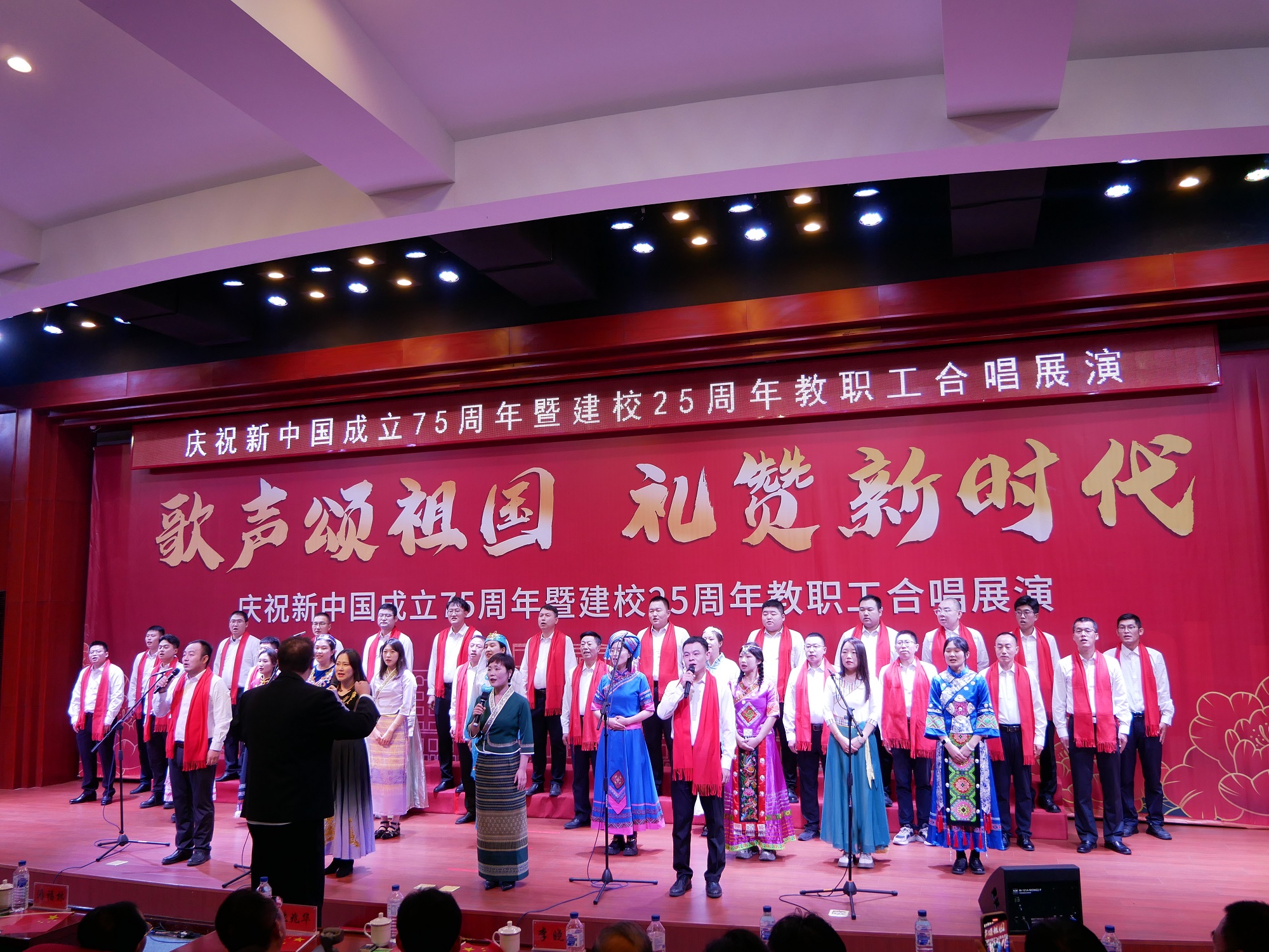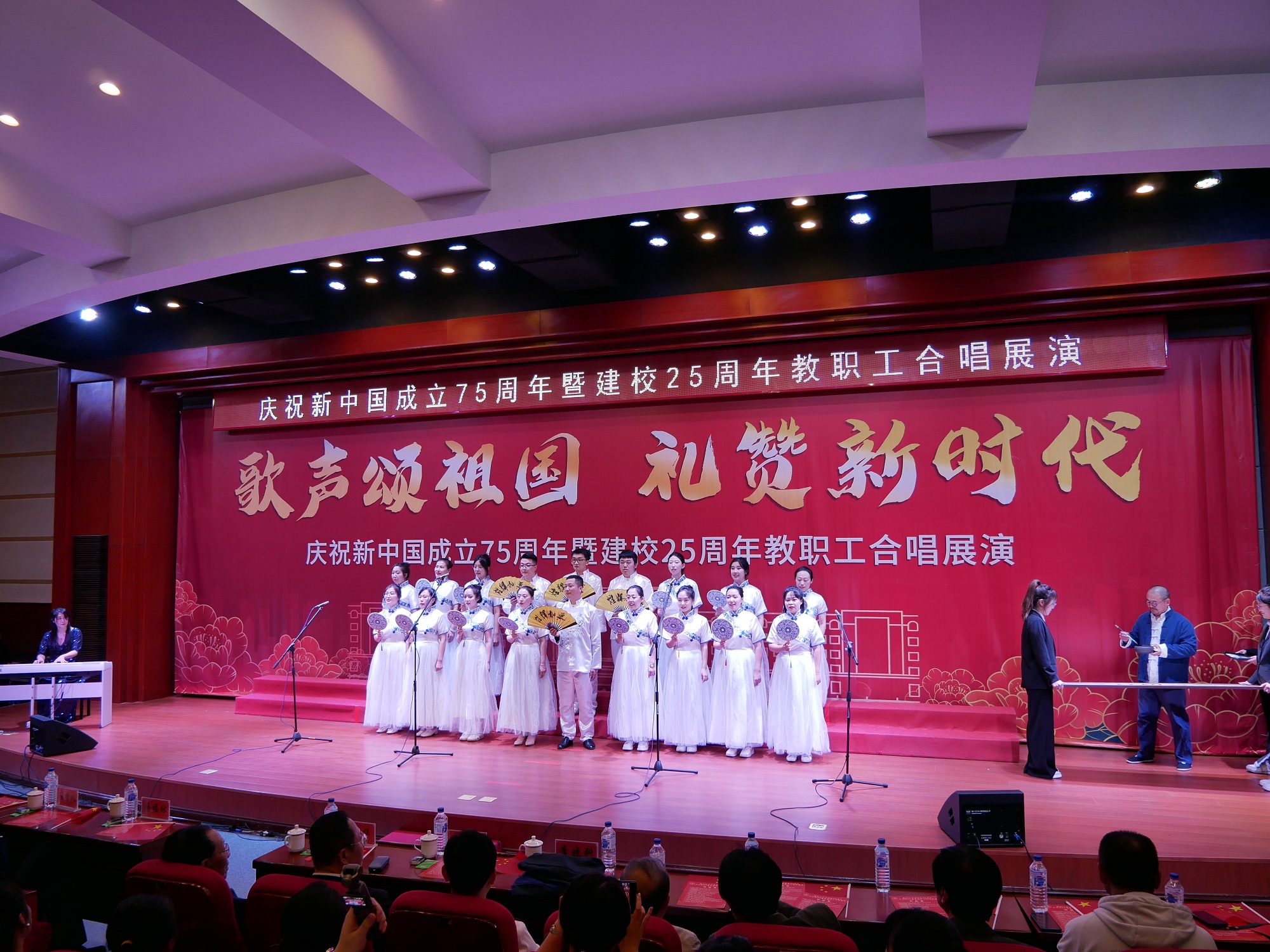 9月25日下午,长春工业大学人文信息学院学术报告厅灯光璀璨,红旗飘扬。学校庆祝新中国成立75周年暨建校25周年教职工合唱展演成功举行。学校创建人、董事长张兆华,校长潘福林,党委书记王煊,纪委书记张哲人,副校长李晓科出席活动。现场热烈隆重,充满力量。