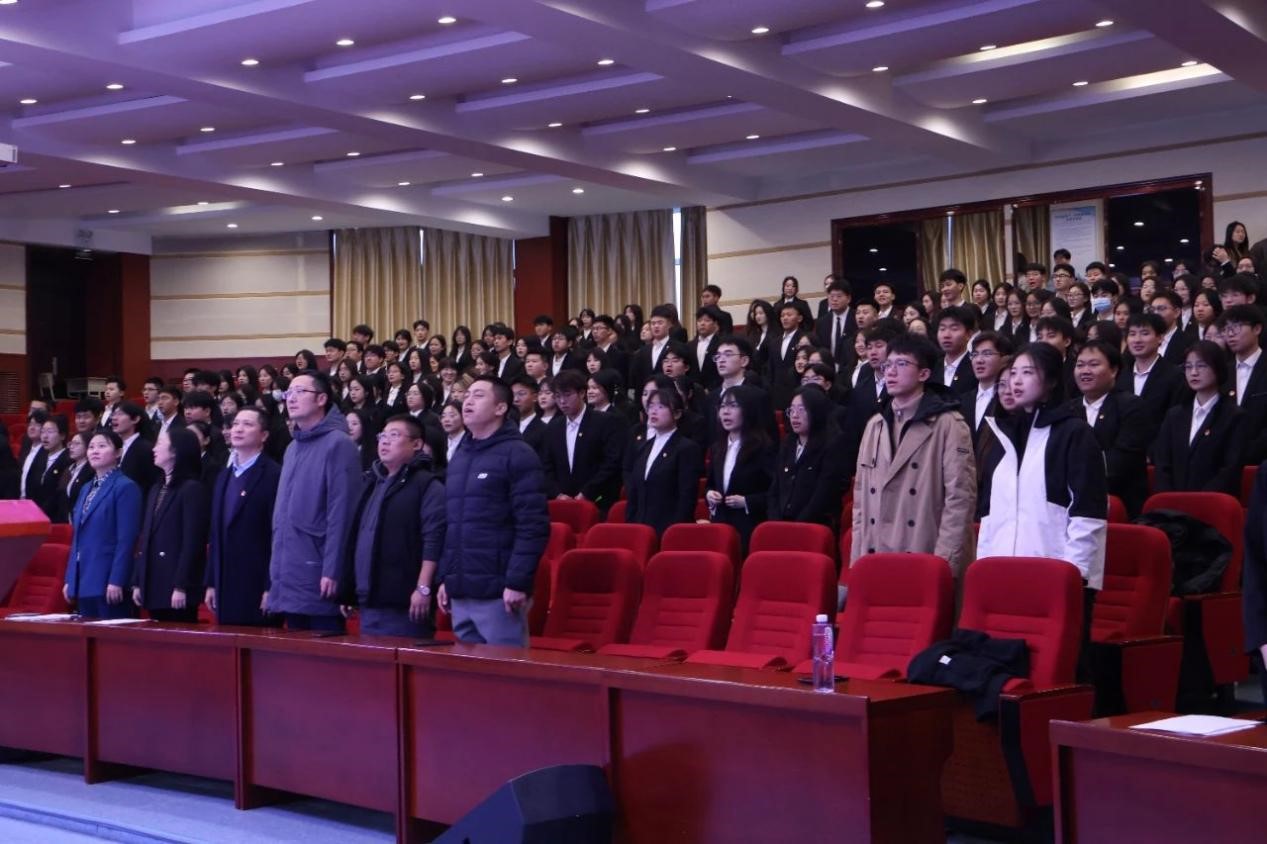 大会在嘹亮的中国共产主义青年团团歌中拉开序幕,全体师生庄重肃立,全体青马学员尽显团结一致、朝气蓬勃的精神风貌。