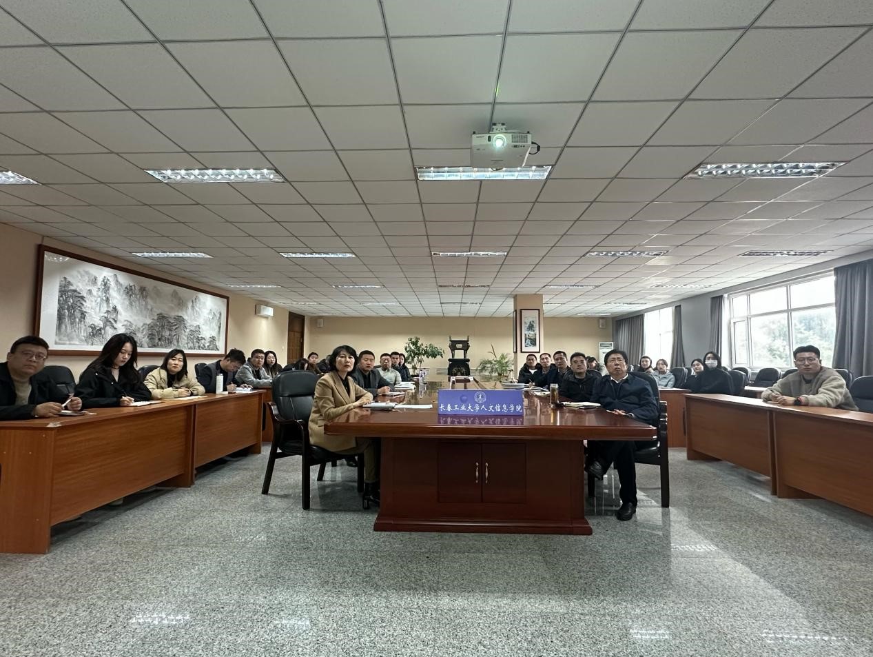 学校在三楼会议室设置分会场,校长潘福林,校长助理王爽,各学院党总支书记、全体毕业班辅导员、招生就业处全体人员参加视频会议。