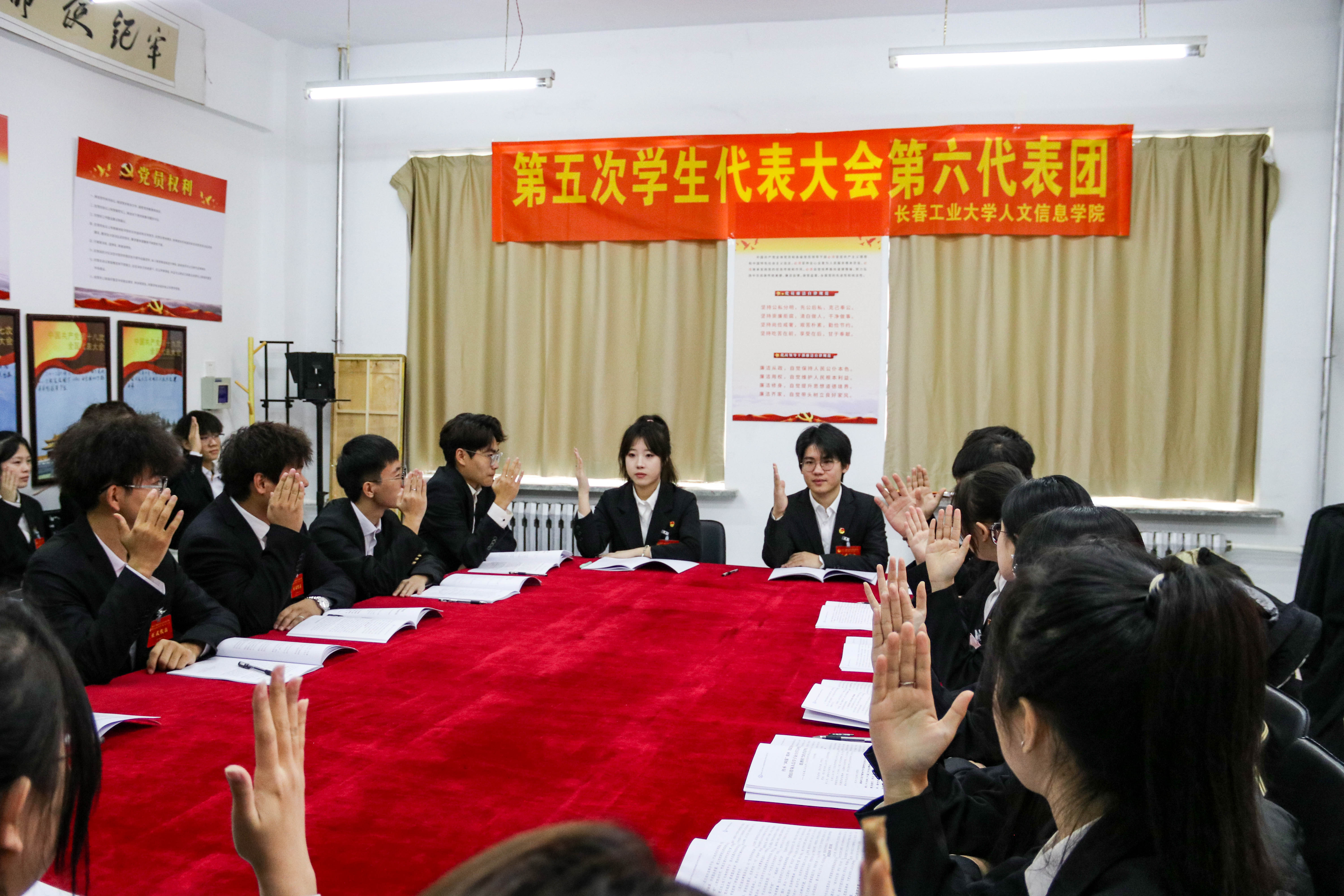 审议通过《长春工业大学人文信息学院第二十三届学生会主席团选举办法(草案)》。