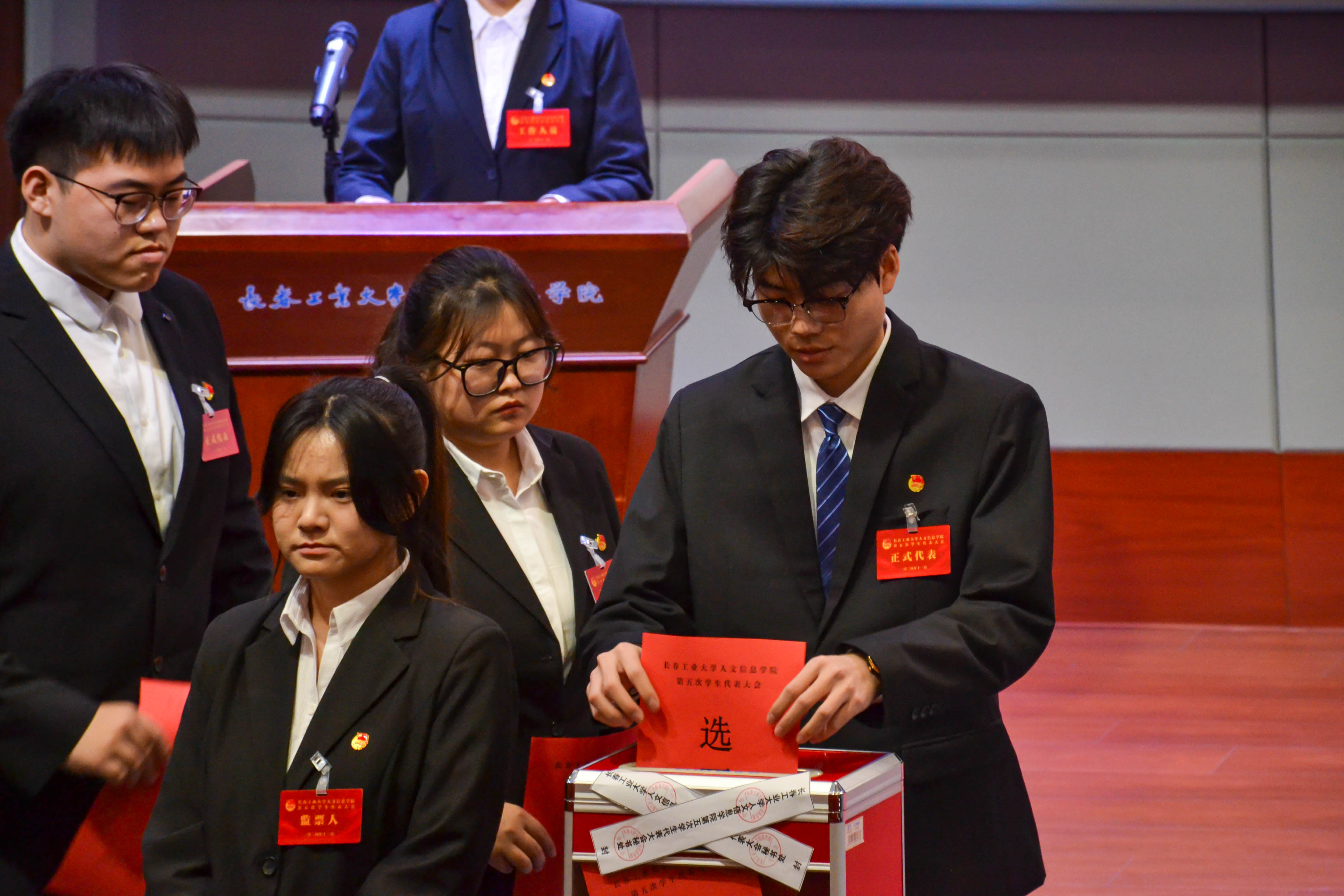 选举长春工业大学人文信息学院新一届学生会主席团。