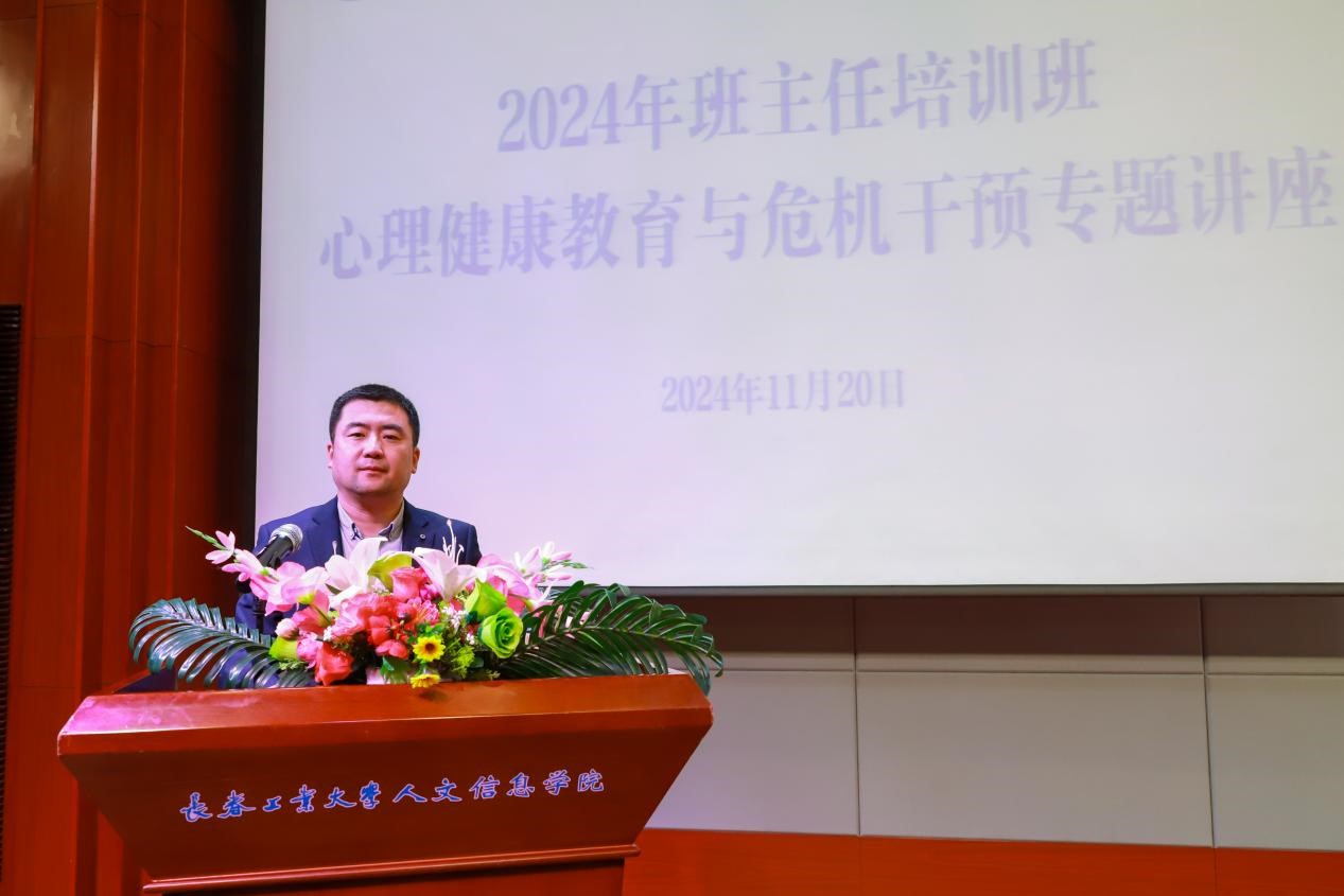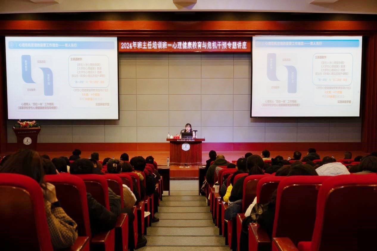 为进一步提高我校辅导员、班主任对学生心理危机的识别与干预能力,切实提升辅导员、班主任队伍岗位认知、业务能力及育人水平。11月20日下午,我校在学术报告厅举办2024年班主任培训班第三期心理健康教育与危机干预专题讲座,邀请吉林大学学生心理健康指导中心主任朱丽雅作心理健康教育与危机干预专题讲座。学校党委副书记周丹出席会议,全体辅导员、全体思政班主任、2024年新聘班主任及心理健康教育与咨询中心教师参加此次培训。会议由学生工作处处长庞旭主持。