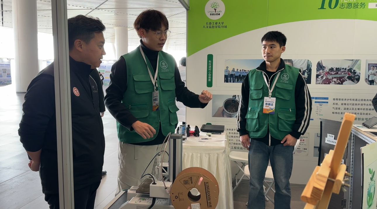 吴海英等领导在志愿服务高质量发展交流活动现场调研了我校的志愿服务项目,同我校学生志愿者亲切交流。志愿者向与会领导热情展示了由我校学生自主设计制作的农作物养护系统、智能垃圾分拣装置、科技文创、3D制作等助农服务科技作品,详尽汇报了志愿服务项目的实际应用成效和发展规划,介绍了我校“两强”人才的培养特色和电气与电子工程学院的专业特色。