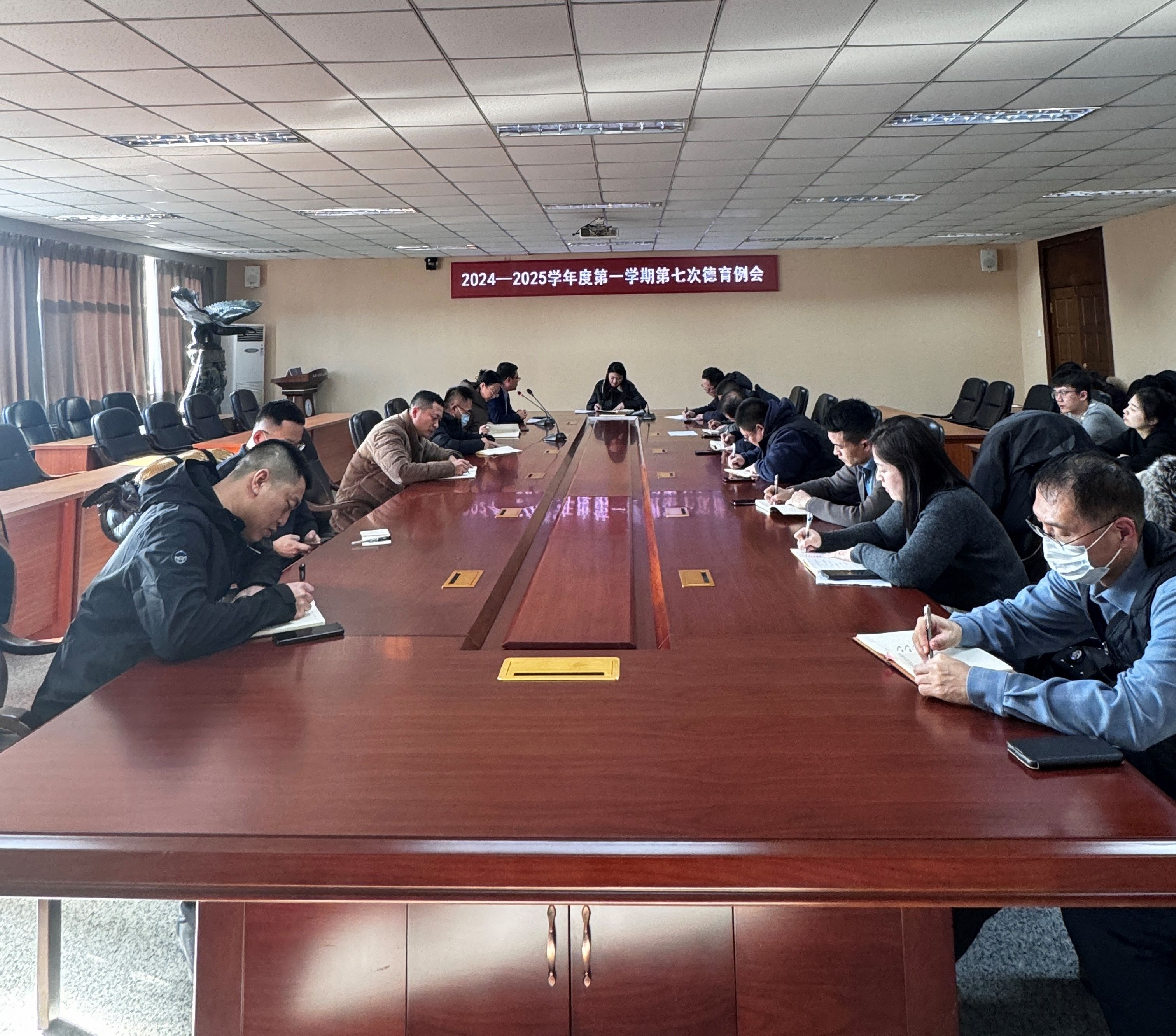 12月16日下午,学校组织召开2024-2025学年度第一学期第七次德育例会。学校党委副书记周丹、学生工作处处长庞旭、校团委书记孟晔出席会议,各学院德育办主任、学生工作处、校团委全体成员参加会议。会议由庞旭主持。