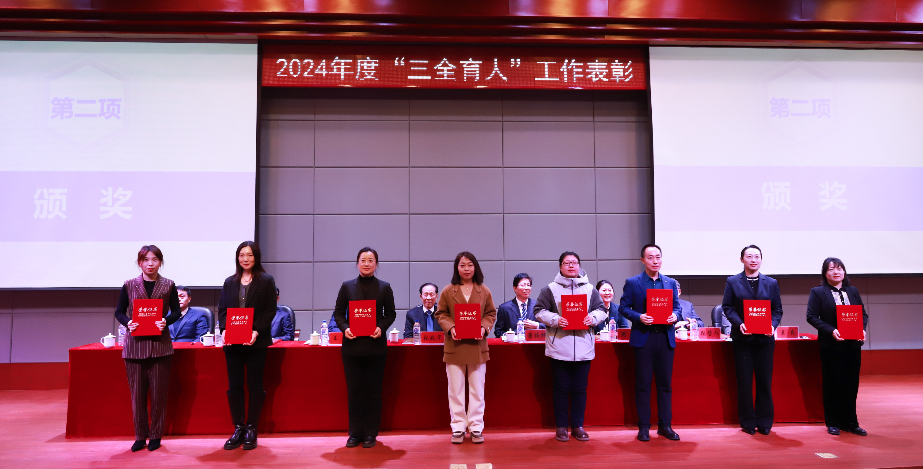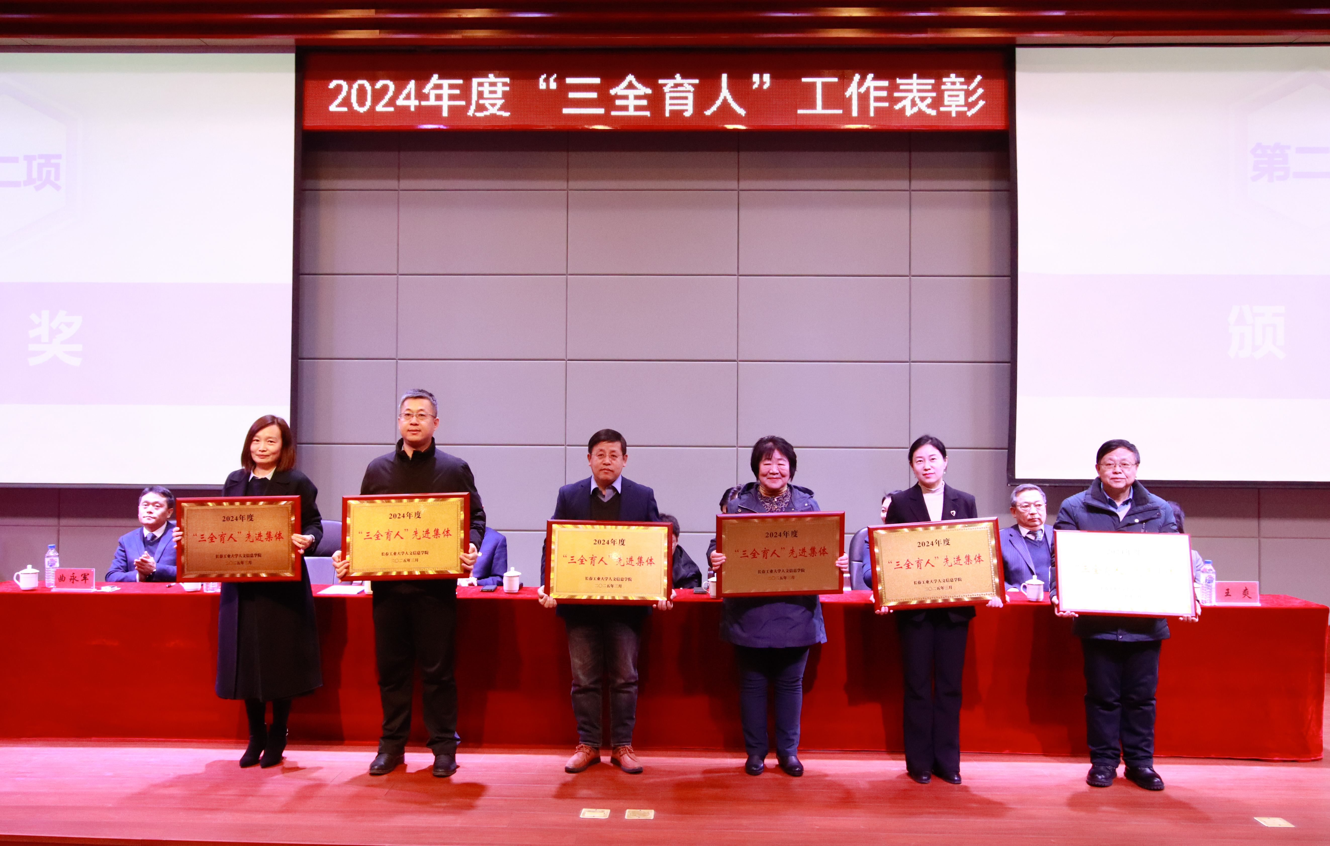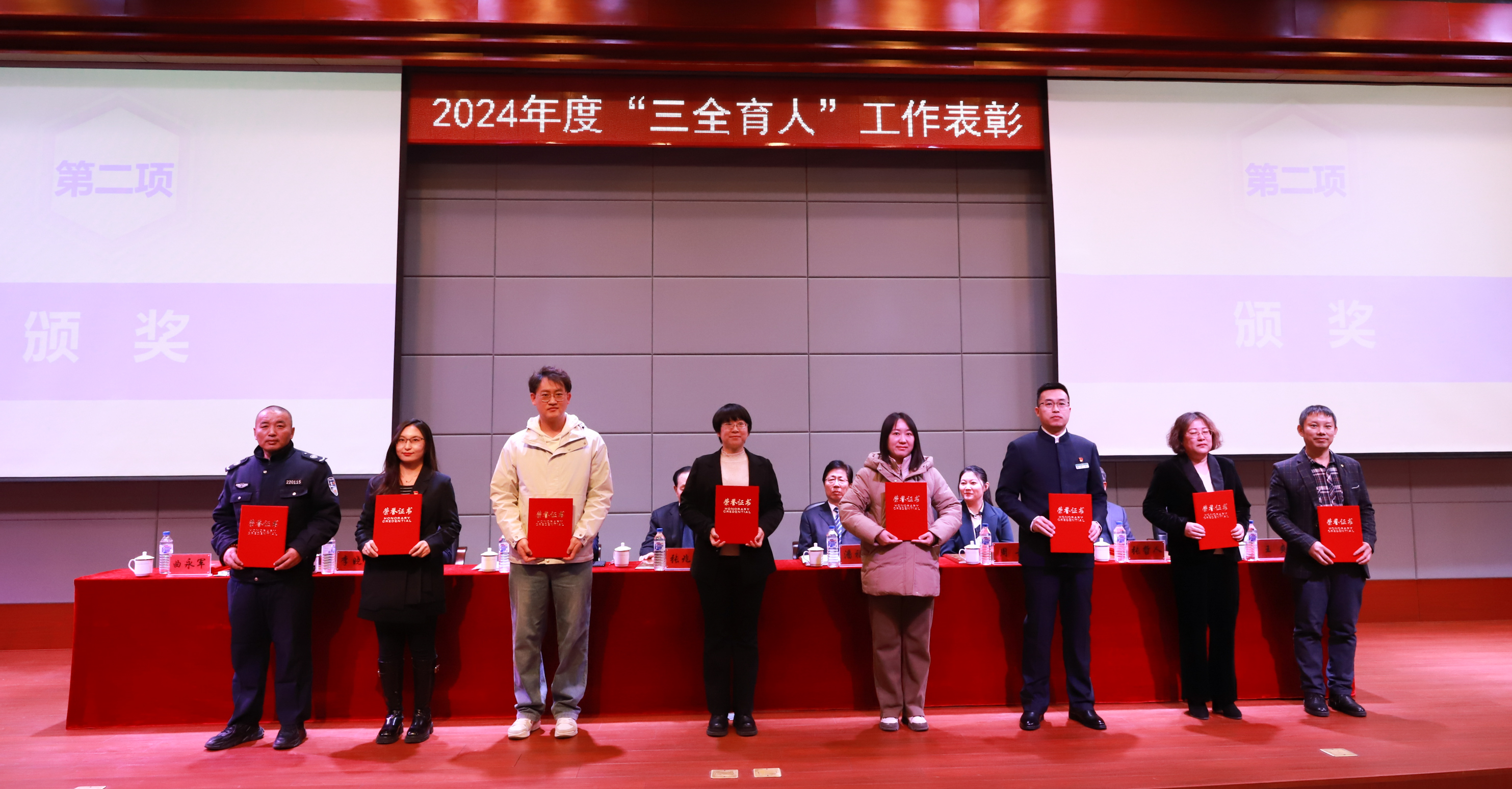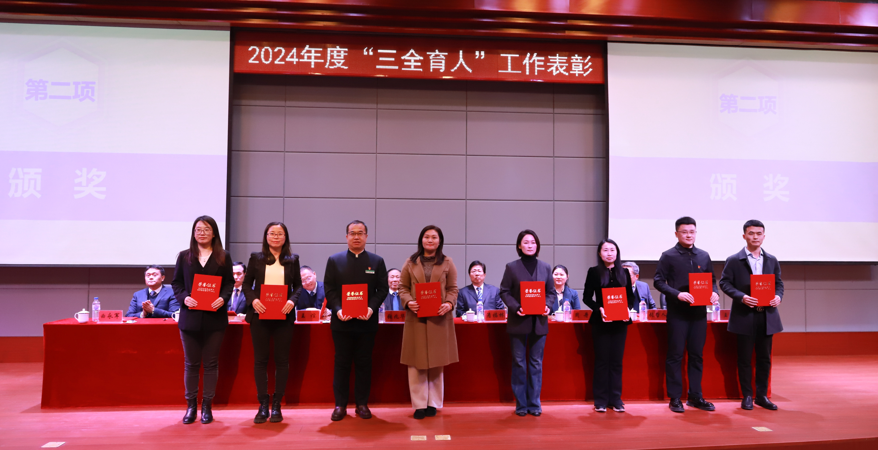 学校领导分别为“三全育人”先进工作者和“三全育人”先进集体代表颁奖。