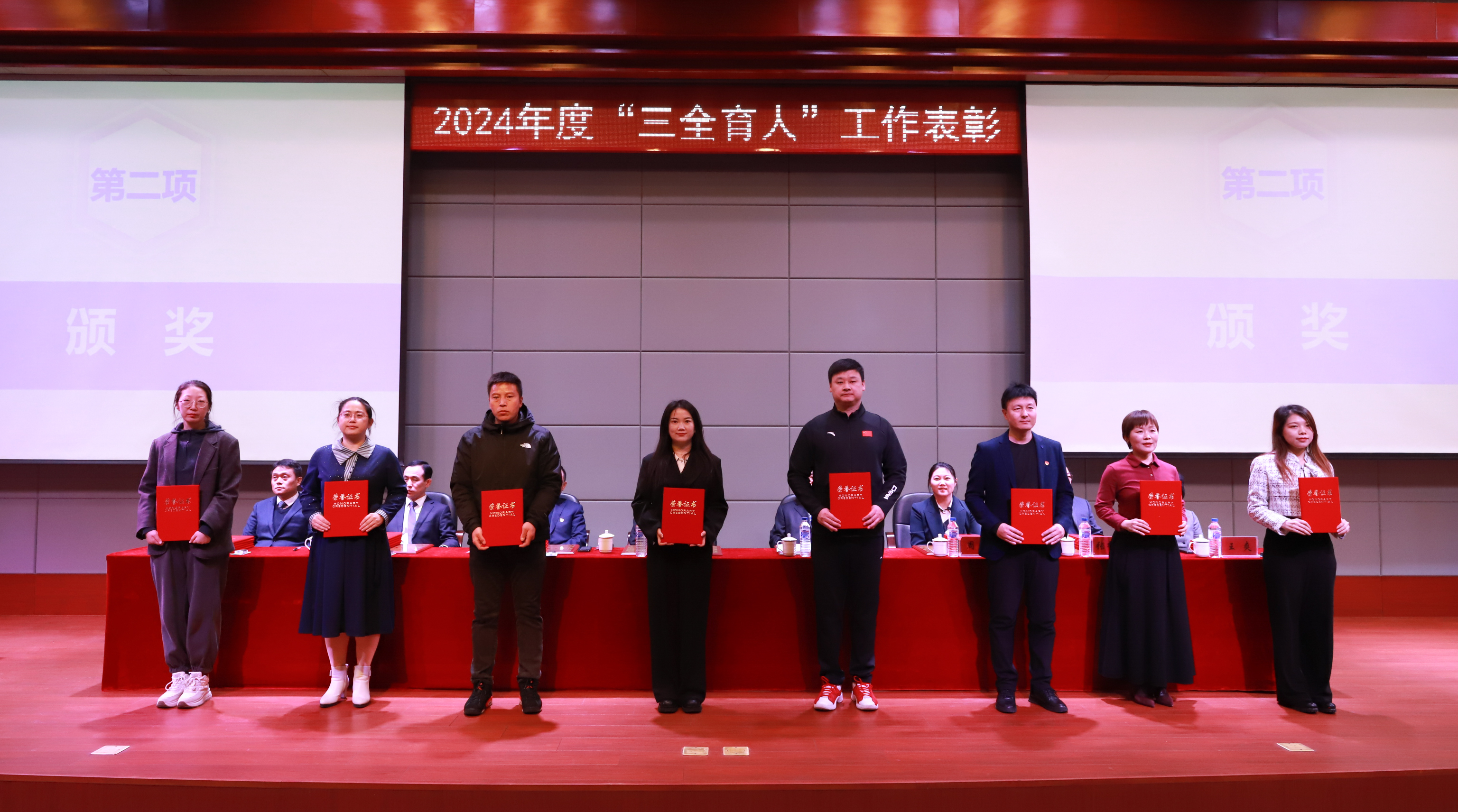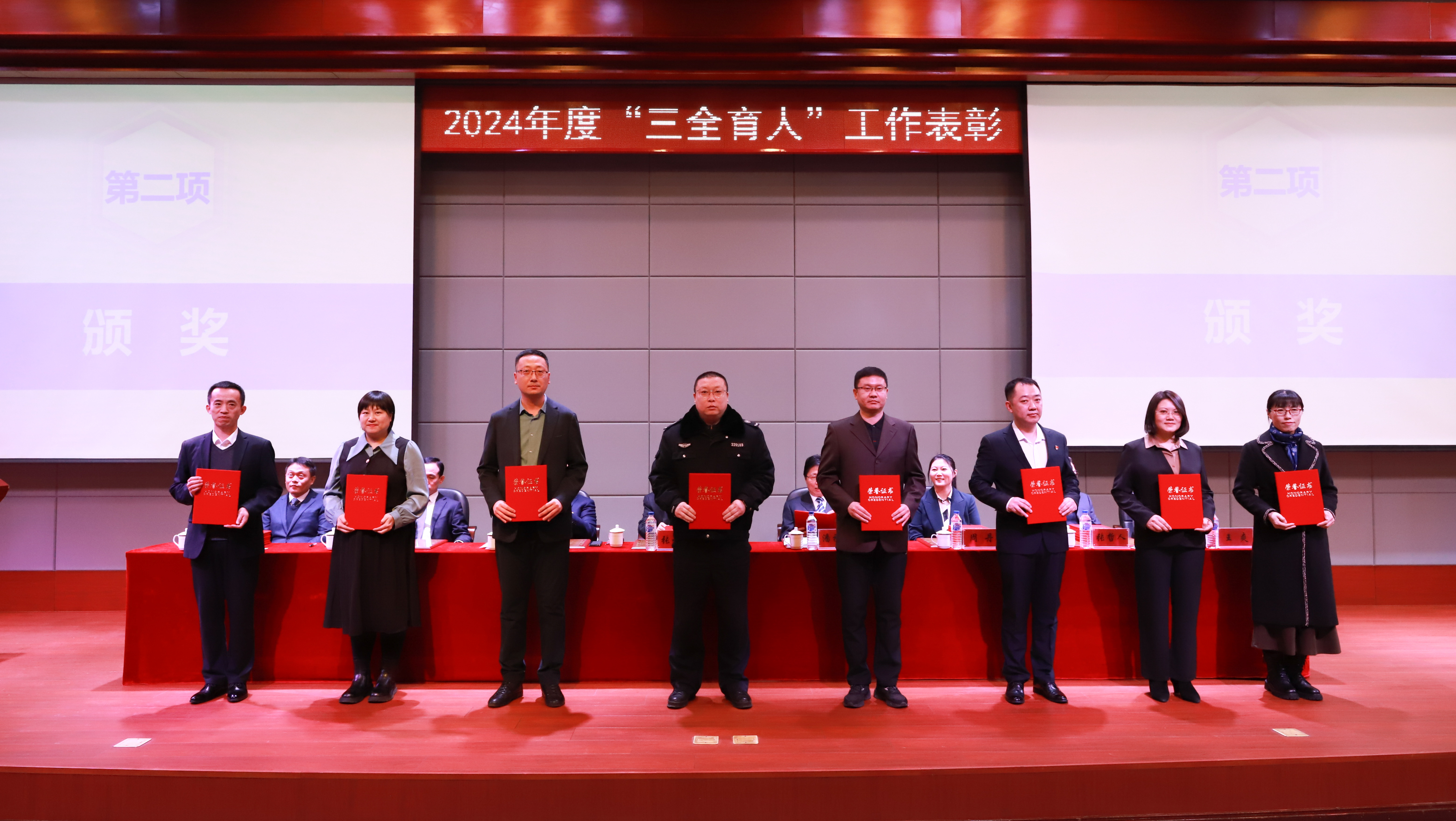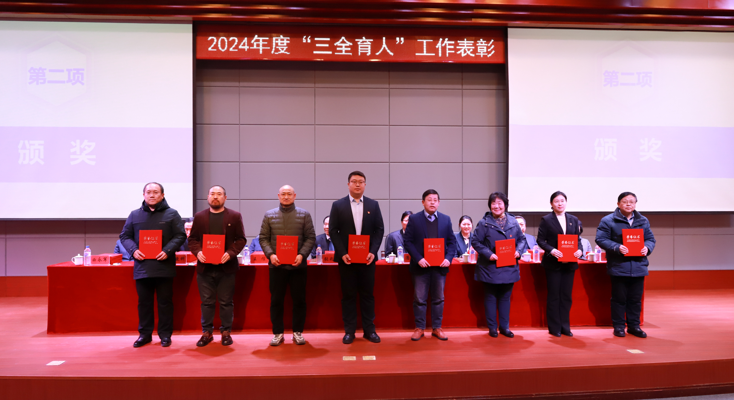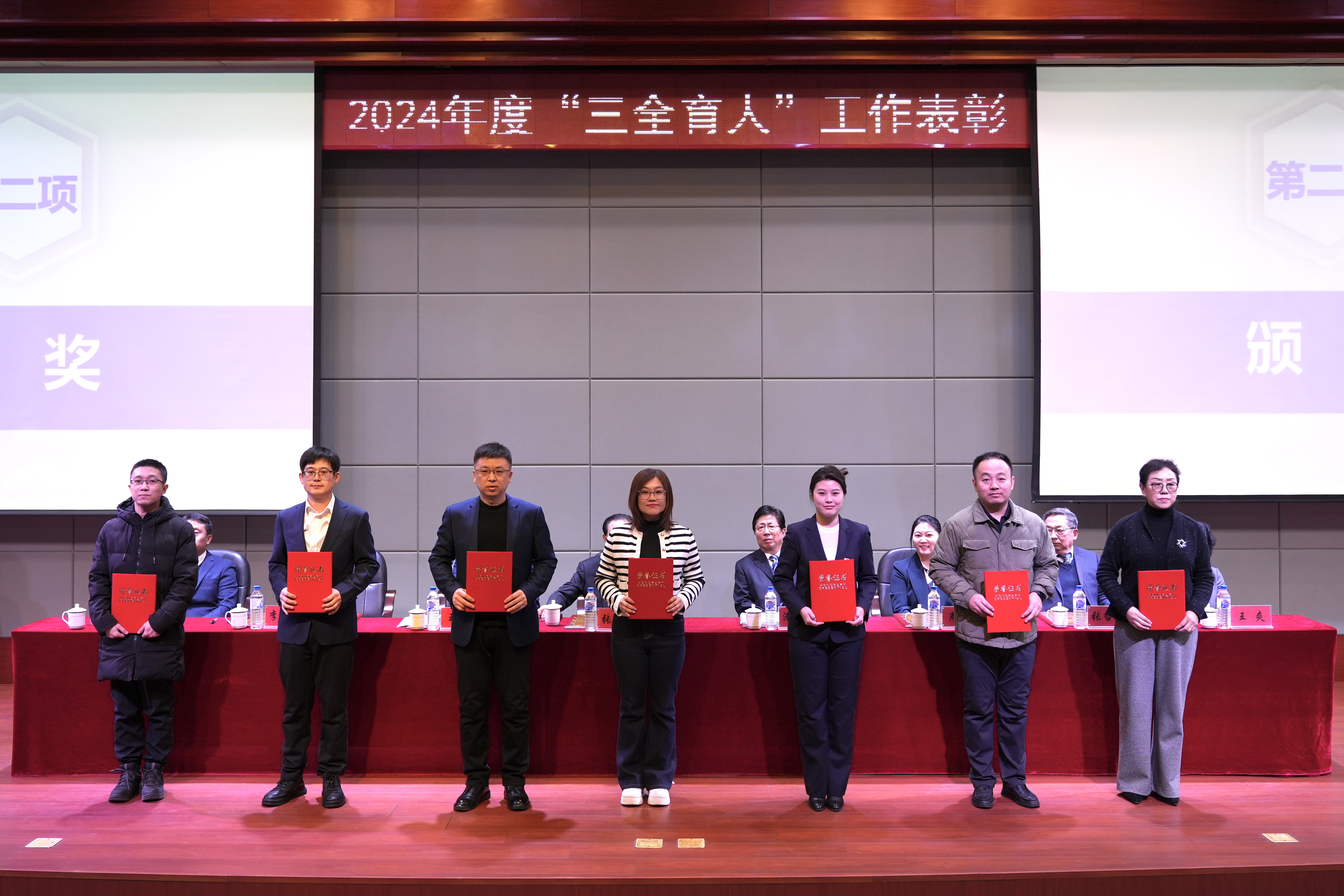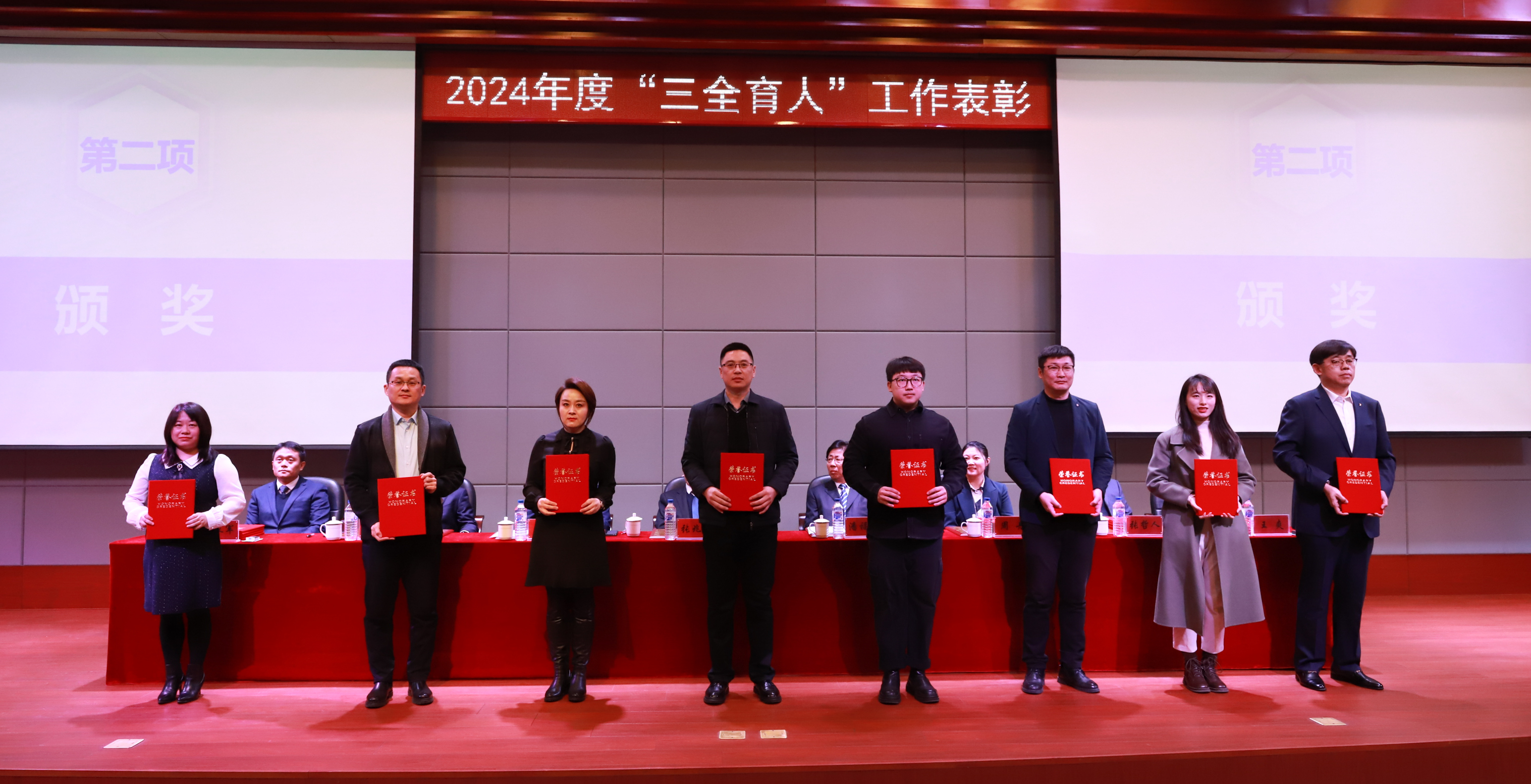 学校领导分别为“三全育人”先进工作者和“三全育人”先进集体代表颁奖。
