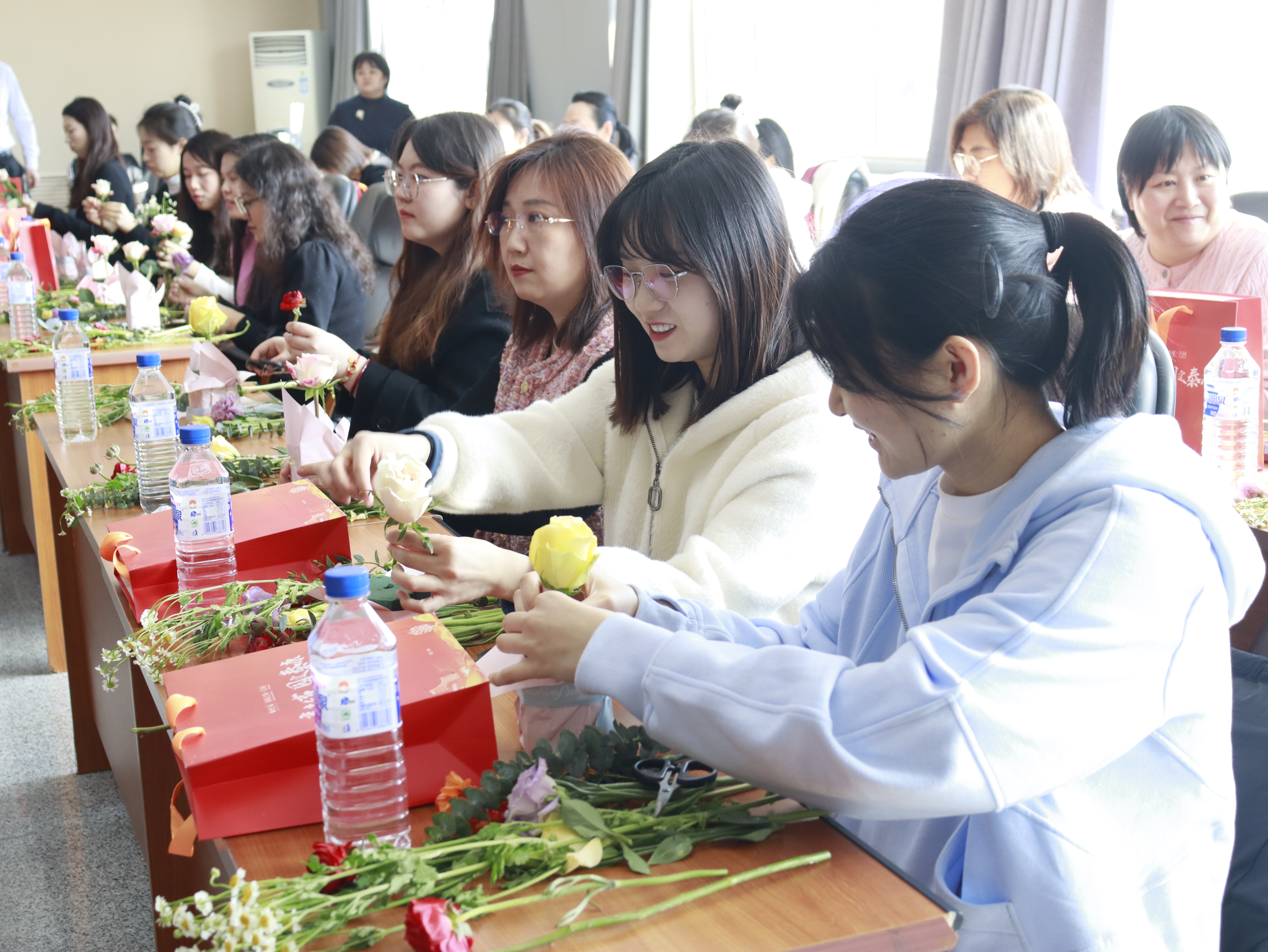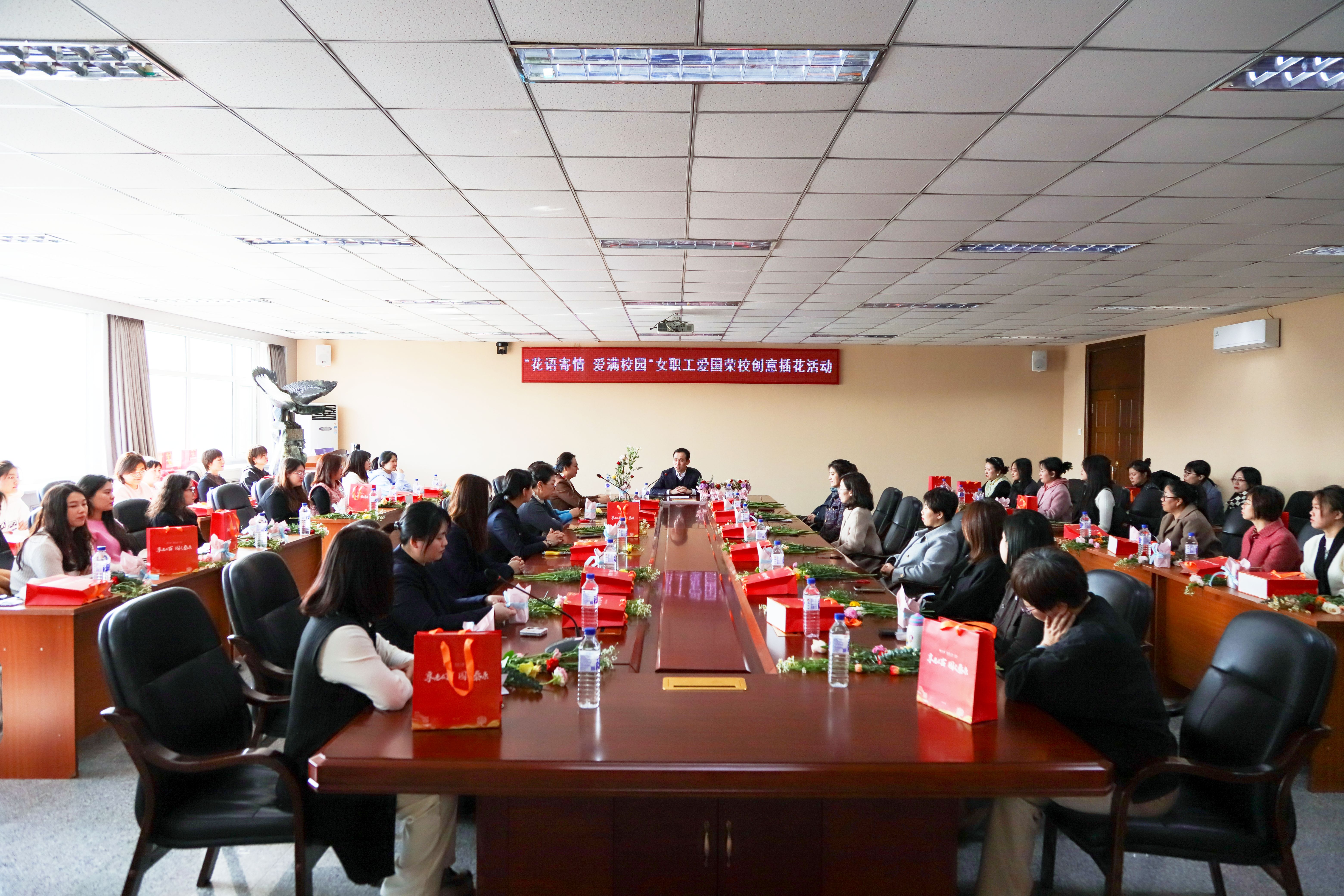2025年3月7日,在第115个国际劳动妇女节来临之际,我校工会组织开展了“花语寄情 爱满校园”女职工爱国荣校创意插花交流活动。来自学校40余名女职工代表参加。学校副校长、工会主席李晓科出席活动并讲话。工会常务副主席、妇委会主任范悦主持活动。