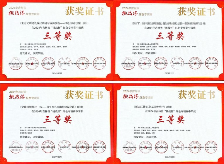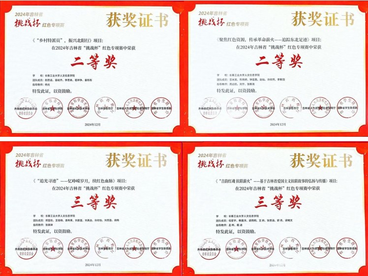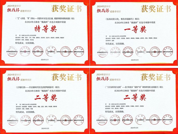 近日,由共青团吉林省委员会、吉林省社会科学院、吉林省科学技术协会、吉林省教育厅、吉林省人力资源和社会保障厅、吉林省学生联合会联合开展的“挑战杯”红色专项赛评选结果公布。其中,我校申报作品荣获特等奖一项、一等奖一项、二等奖四项、三等奖六项的优异成绩。