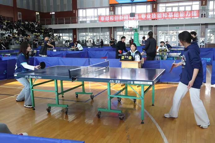 3月19日下午,学校2025年“大学生阳光体育节”开幕式暨第四届“飞扬杯”学生乒乓球比赛团体赛在体育馆顺利举办。学校党委副书记周丹,学生工作处处长庞旭,团委书记孟晔,体育教研部副主任奚益兵出席开幕式。各学院党总支书记、团委书记、辅导员以及体育教研部全体教师现场参加活动。