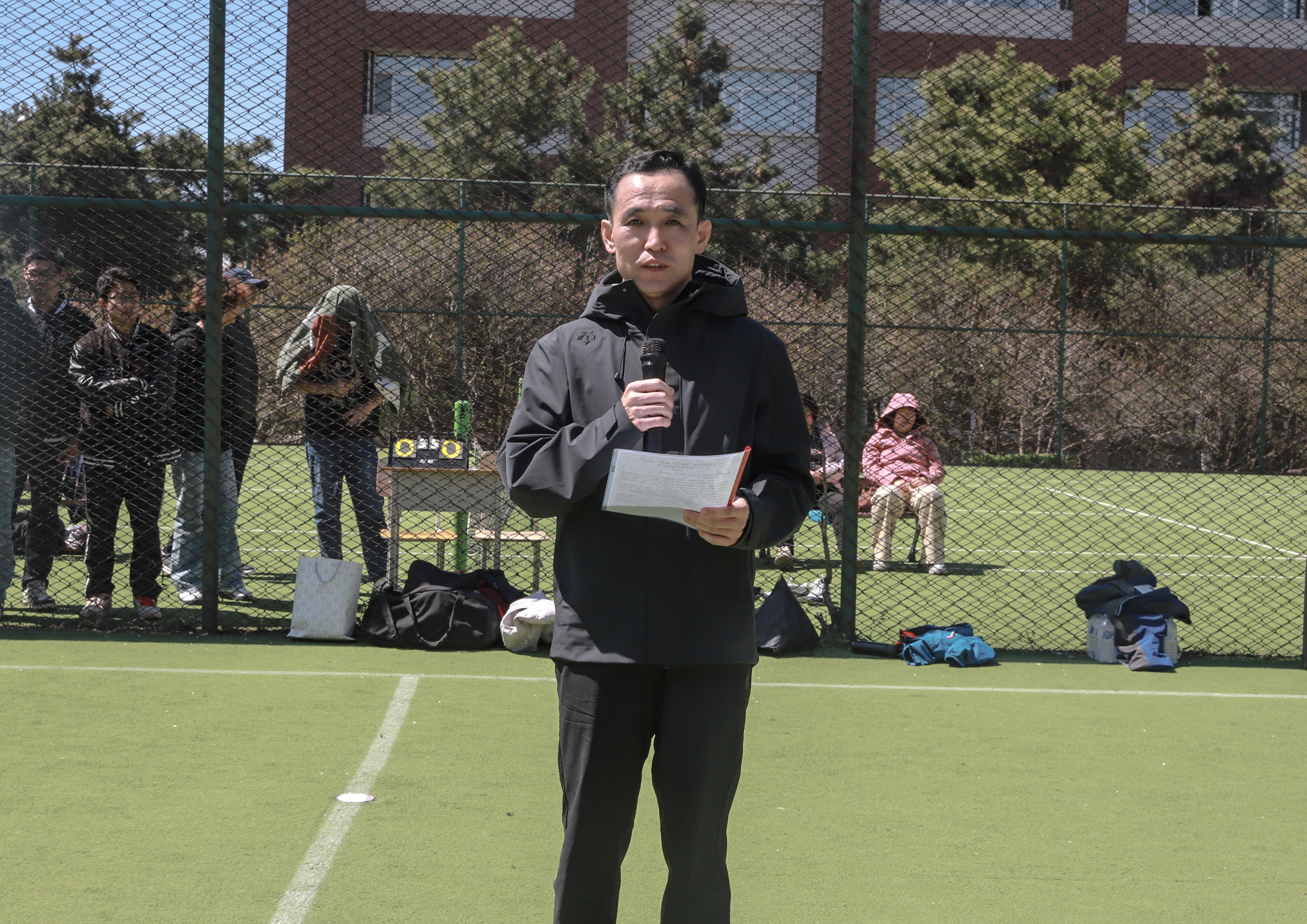 李晓科指出,体育承载着强健体魄、砥砺品格的使命,教职工体育赛事更是凝聚团队力量、展现精神风貌的重要舞台。赛场上,每一次传球都凝聚着信任,每一滴汗水都诠释着坚持。这种团结协作、永不言弃的精神,与学校“共创、共享、共荣”的发展理念深度契合,也必将为学校高质量发展注入强大动力。他勉励全体运动员赛出风格、赛出水平,让竞技激情与文明风尚交相辉映。同时,他希望裁判员要严守规则、公正执裁,以专业素养守护赛场净土;希望观赛师生文明助威、热情互动,用掌声与喝彩传递温暖力量,将这场赛事打造成为展现师德风范的窗口、增进团队友谊的桥梁、传承体育精神的盛会。