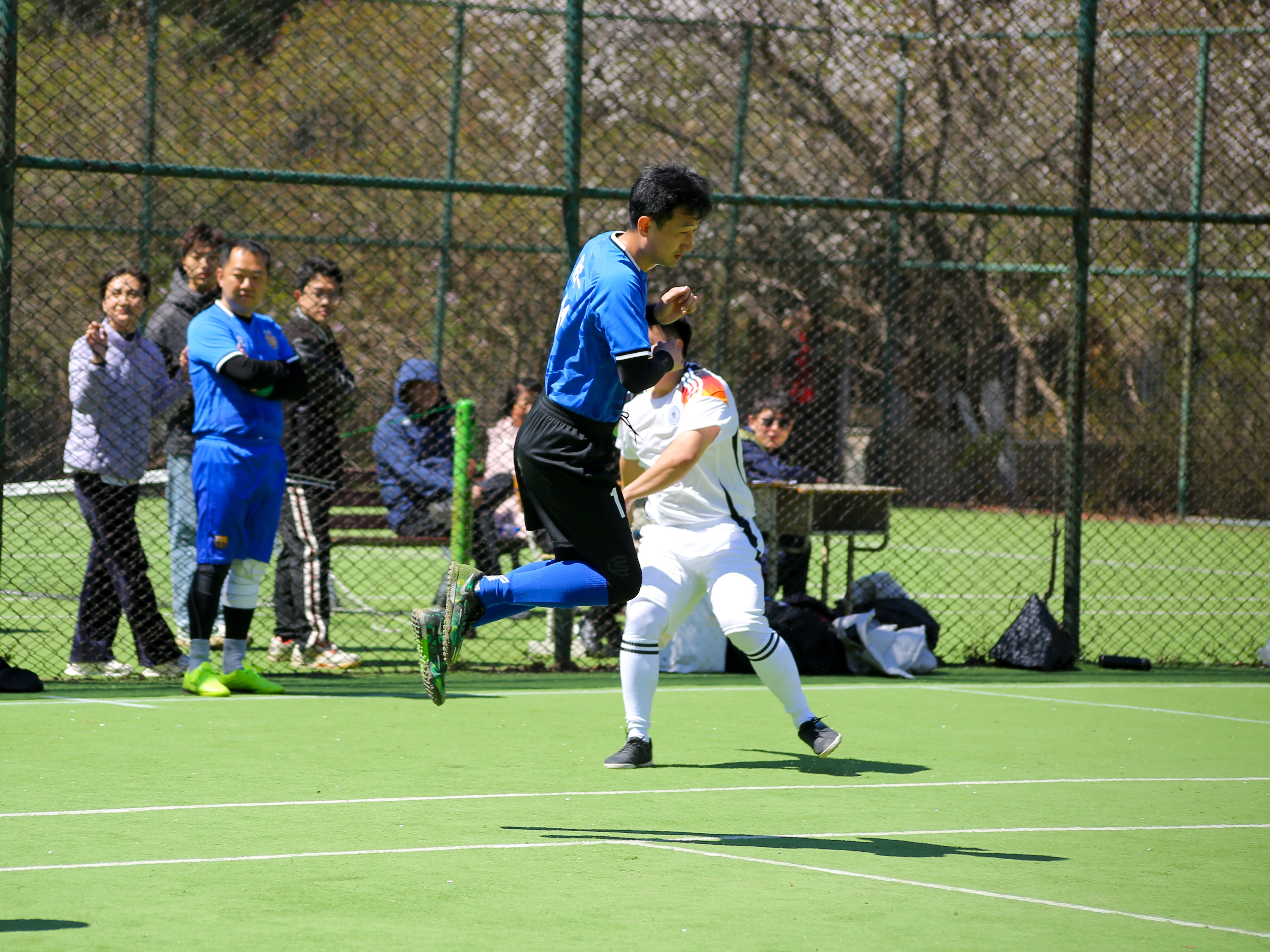 赛场上,参赛队员挥汗如雨,奋勇拼搏,进攻、抢断、射门、扑救等精彩瞬间层出不穷。场上队员配合默契、身姿矫健、斗志昂扬,场下替补队员和现场观众加油呐喊,欢呼声喝彩声此起彼伏,将比赛不断推向高潮,充分展现了足球运动的激情和魅力。