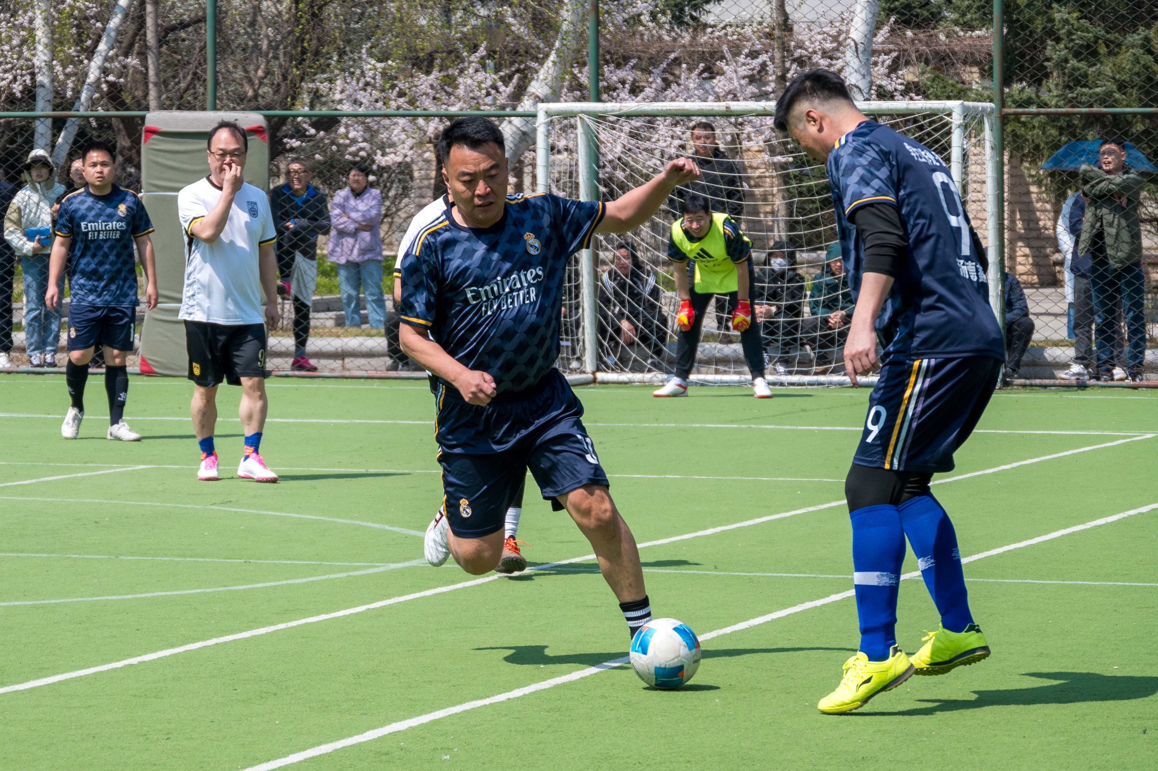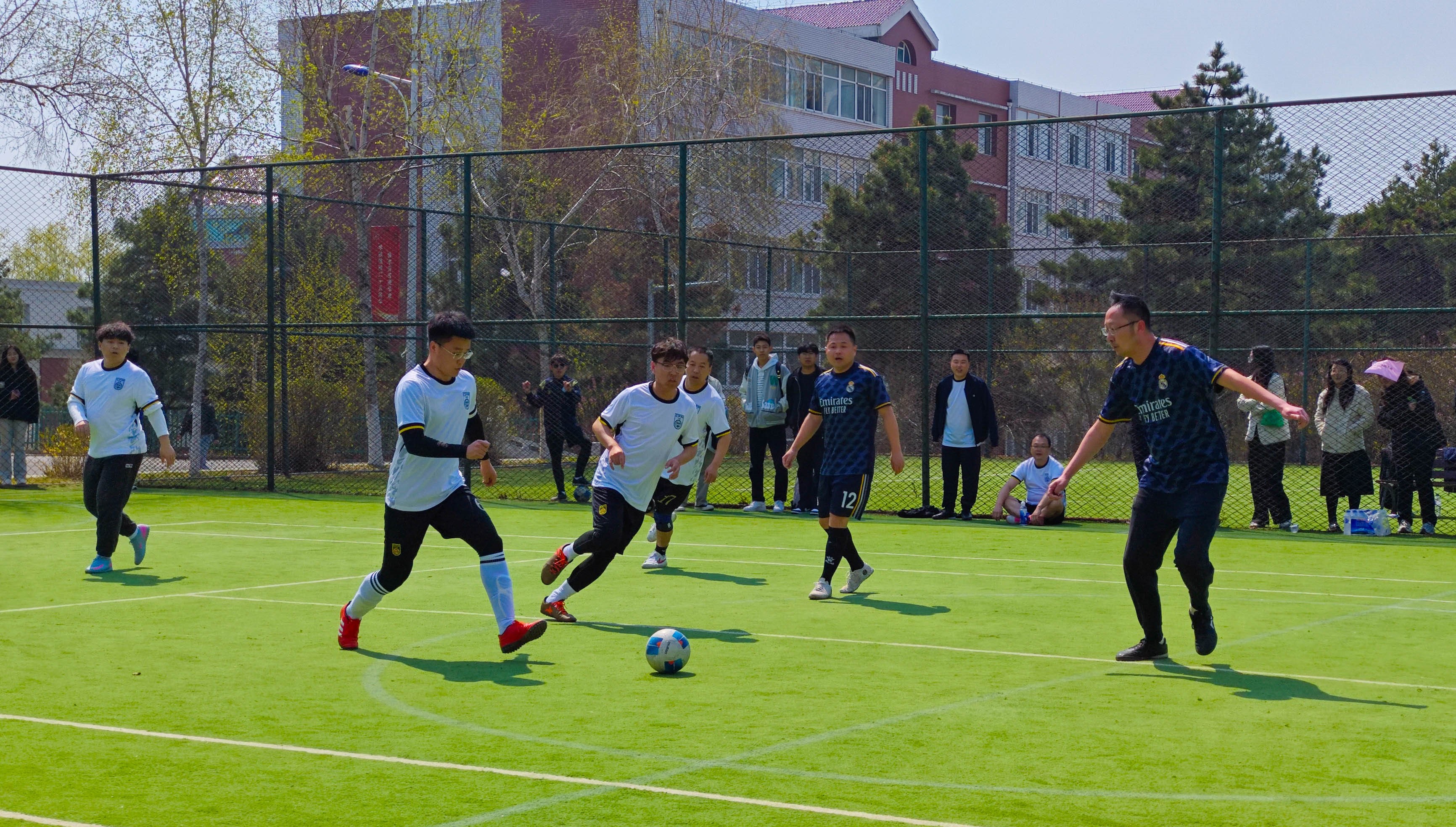 本次比赛以分工会为单位组队参赛,共有9个分工会组成的7支代表队50余名教职工足球爱好者报名参赛,共计进行13场比赛,预计将于5月9日决出最终名次。