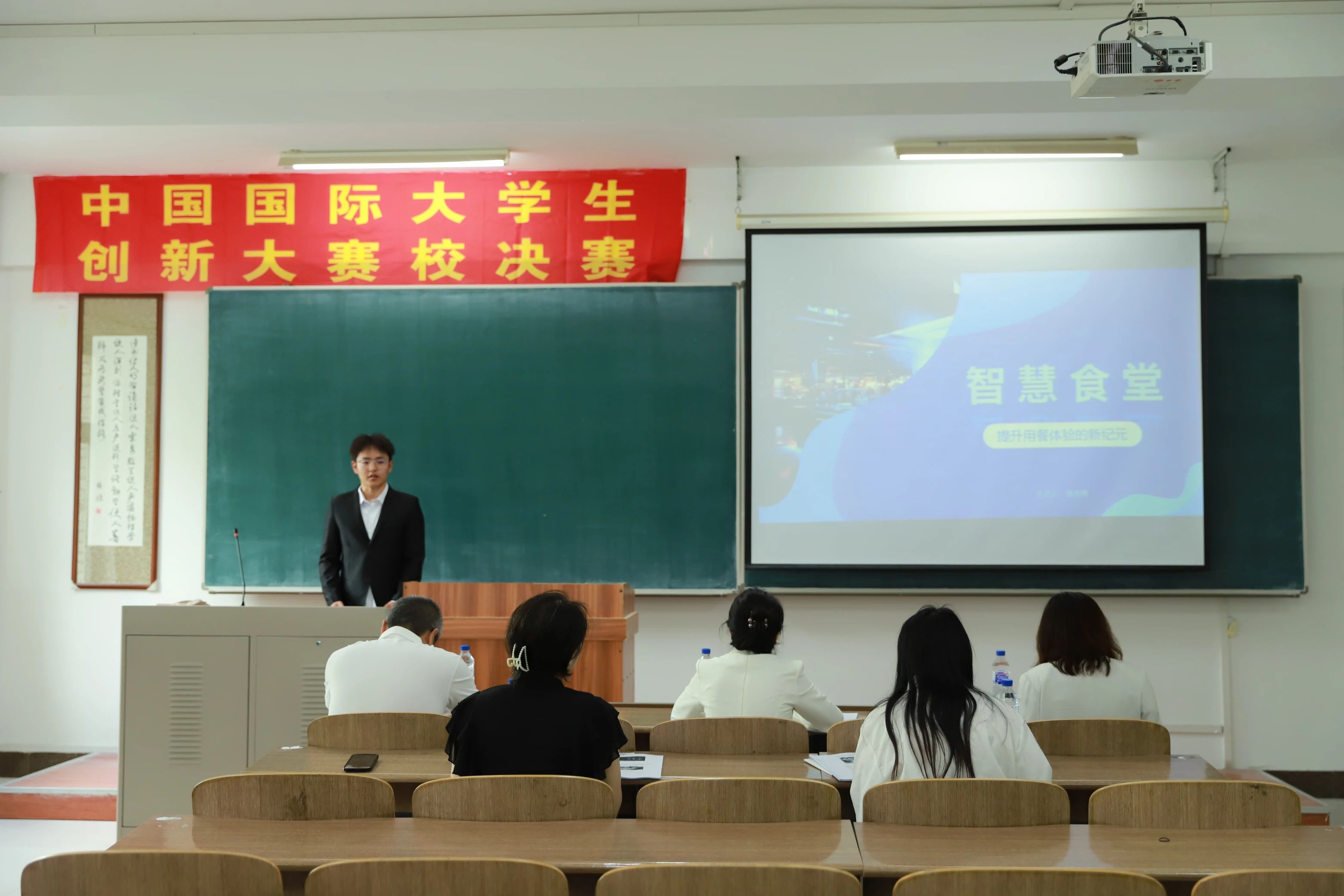 在校赛决赛阶段,入围的102个项目团队分6个小组展开激烈角逐。决赛采用“路演展示+现场答辩”双环节评审模式,30位校内外专家担任评委,以确保评审的公正性、公平性和专业性。曲永军对赛事准备各项工作表示肯定,希望工作人员齐心协力,保障赛事平稳运行,并鼓励项目团队沉着应对,展现青年学子“我敢闯,我会创”的精神风貌,以赛促学提升实践能力。