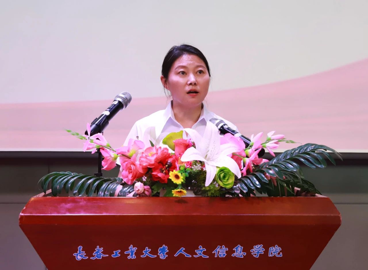 党委副书记周丹宣读《中共长春工业大学人文信息学院委员会关于表彰2023-2025年度优秀共产党员、优秀党务工作者和先进基层党组织的决定》。