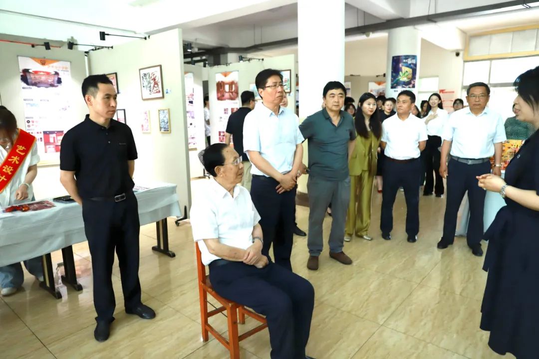 张兆华、潘福林等学校领导在类维顺和秦海雷的陪同下,认真参观了每一件作品,并与同学们进行了亲切交流。他们对同学们的作品给予了高度评价,对同学们在结业展中所展现出的创新精神和实践能力表示赞赏。