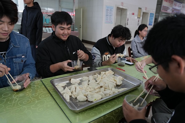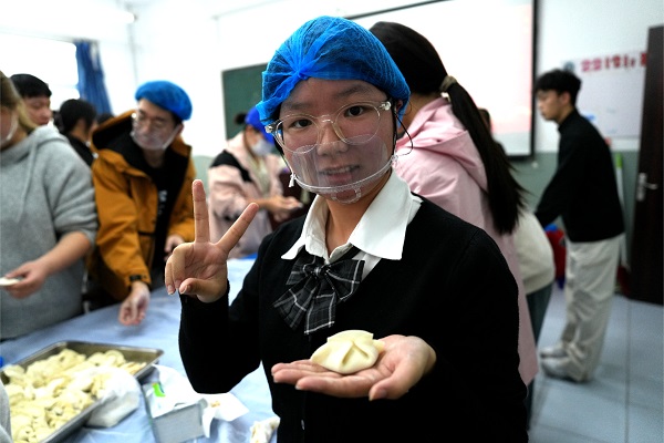出锅后的饺子不仅被端上餐桌,还被同学们细心分装,为节日期间仍坚守岗位的保安、宿管等工勤人员送去一份“热腾腾的祝福”,用实际行动传递感恩与尊重。