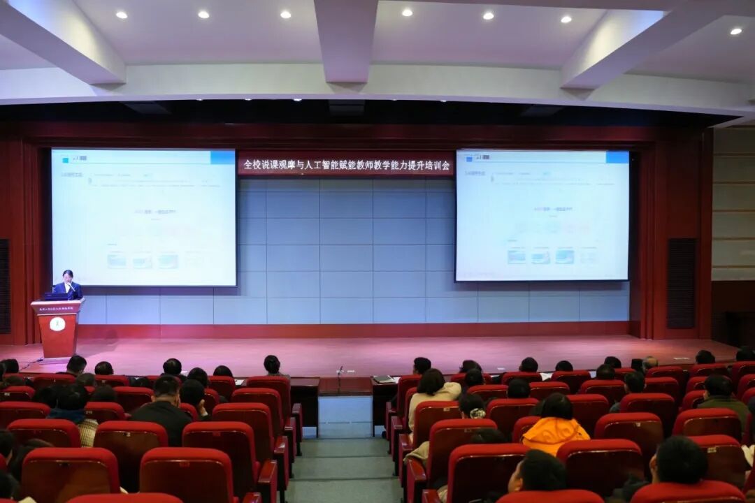 10月22日下午,全校说课观摩与人工智能赋能教师教学能力提升培训会在学术报告厅举行。副校长曲永军出席会议,教务处、教学质量监控中心、图书馆负责人,各教学单位院长(主任),教务处、质量监控中心、图书馆相关人员,全体任课教师参加会议。会议由曲永军主持。