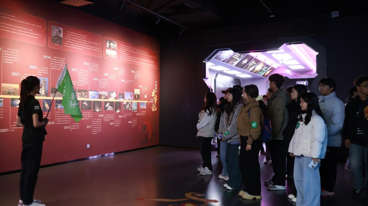 筑梦星辰航天科教文旅馆的沉浸式体验点燃了学员们的科学热情。在6000余平方米的场馆内,1:1还原的“天和”核心舱、真实的火箭残骸、仿真月球土壤等展品映入眼帘,大家通过全息投影重温中国航天发展历程,亲身体验载人航天训练科目。当穿梭于八大行星展区聆听星际声音时,青马学员们深切感受到航天人攻坚克难的拼搏精神,更激发了投身科技报国的热血豪情。