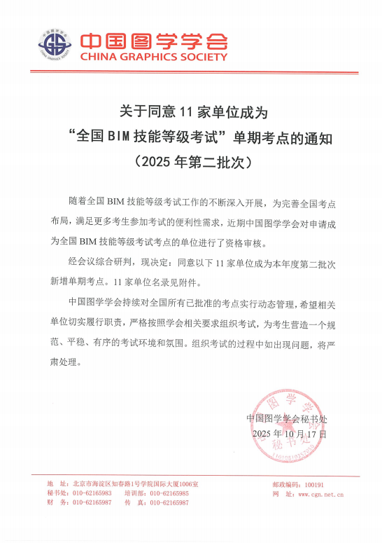 近日,中国图学学会发布“全国BIM技能等级考试”考点名单,我校成功获批成为考点单位。