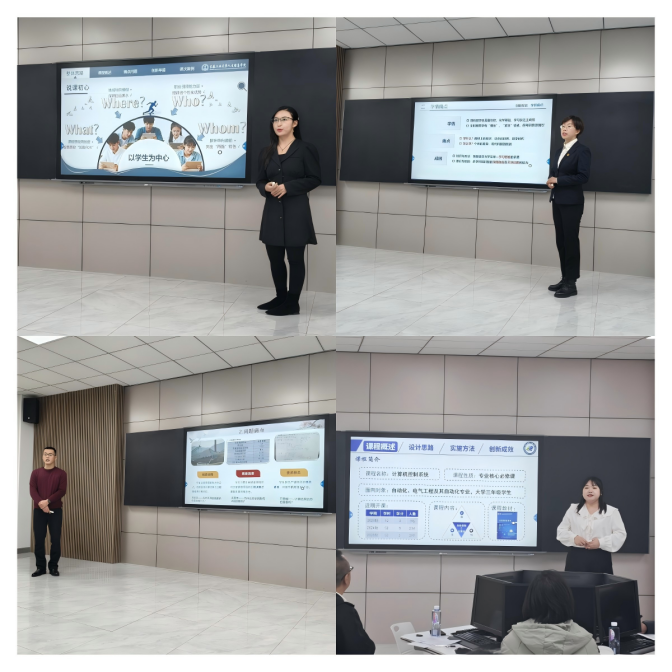 比赛现场,12位参赛教师按抽签顺序,依次进行课程思政教学创新成果汇报。他们生动演示了运用智慧教学与大模型工具呈现思政案例,利用大数据分析学情以精准优化融入策略,在教学设计中清晰体现了知识、能力、价值“三维目标”;在教学内容里实现了思政元素与专业知识的有机融合;在课堂效果中全面引入智慧教学手段,呈现出多元多样的课堂效果,全面展示了教学特色与创新点。