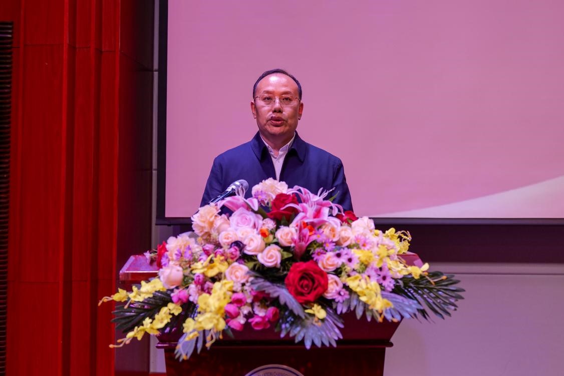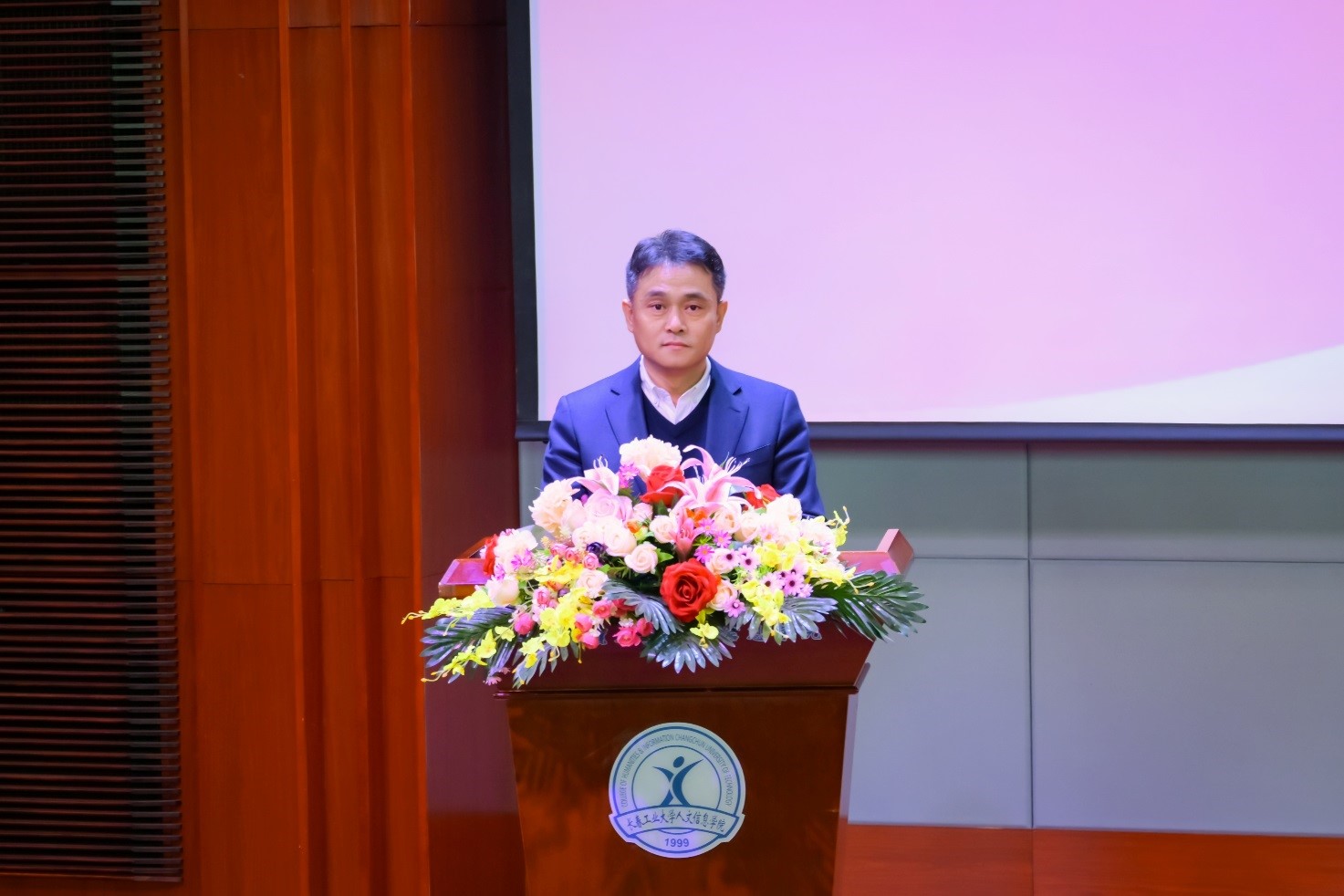 吉林省教育厅二级巡视员杨志宏讲话。他对学校十年劳动教育的扎实实践与显著成效给予高度评价,强调这次活动既是学校认真贯彻习近平总书记关于新时代高校立德树人根本任务的重要举措,也是深入落实中央、省委部署要求,推进“五育融合”的生动实践。他希望学校在已有工作的基础上再接再厉,持续发力。要强化政治担当,进一步提高政治站位,站在为党育人、为国育才的战略高度,全力推动“五育融合”建设,因事而化、因时而进、因势而新。要擦亮“优势特色”,将劳动教育工作开展与发挥自身办学优势、优化资源紧密结合,持续打造具有学校标识度、吉林地域辨识度的劳动教育品牌。要坚持“深化创新”,不断在推进劳动教育与专业教育、思政教育的融合上下功夫,为学生搭建更多成长成才的平台。要发挥“辐射作用”。要建立体制、完善机制,注重将学校好经验、好做法提炼上升为可推广的模式,为推动全省高校劳动教育高质量发展积极贡献更多方案、智慧和力量。